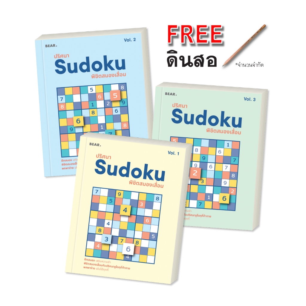ชุดหนังสือ ปริศนา Sudoku พิชิตสมองเสื่อม มี ชุด 3 เล่ม, ชุด 4 เล่ม และ ชุด 5 เล่ม