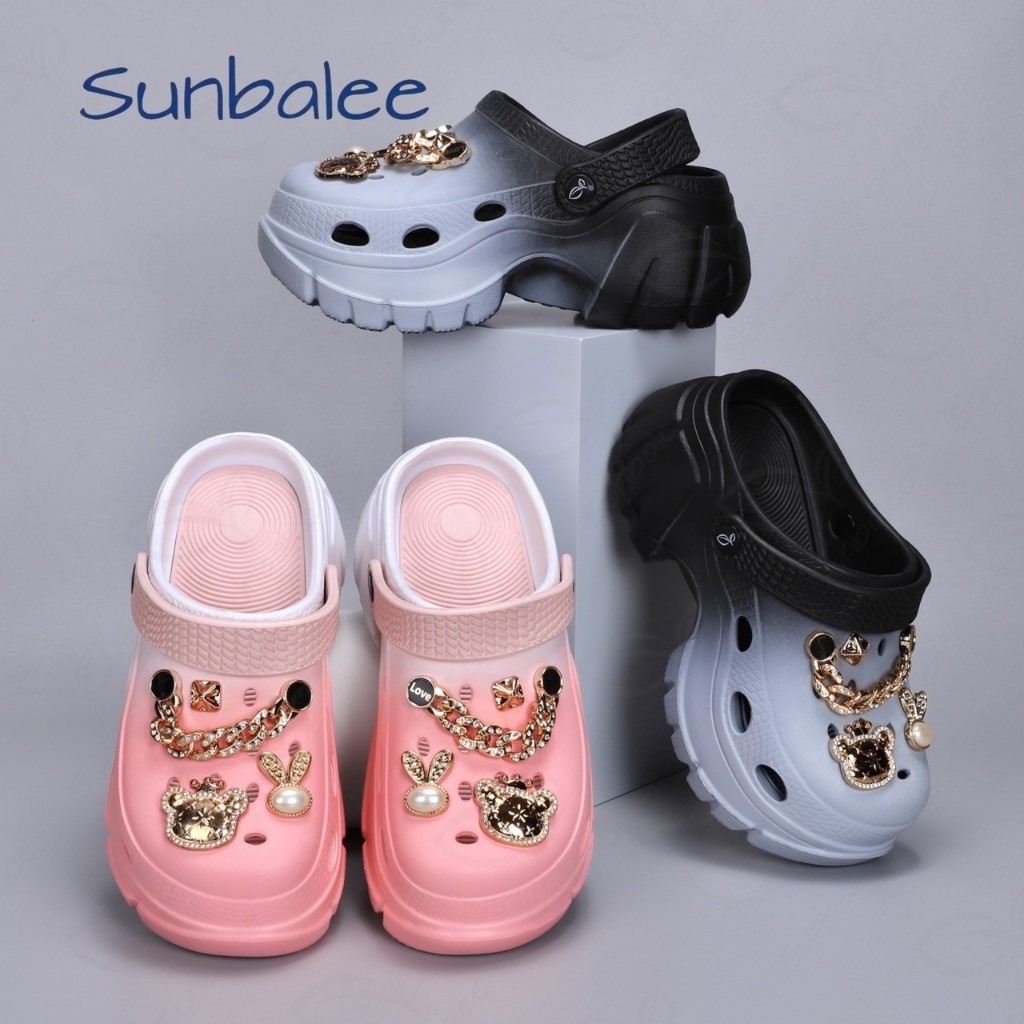 SUNBALEE ✨ H509-2T รองเท้าหัวโต แบบสวม แถมตัวติดงานหรูหรา สูง 7 CM. รองเท้ารัดส้น วัสดุ EVA สินค้าพร้อมส่ง