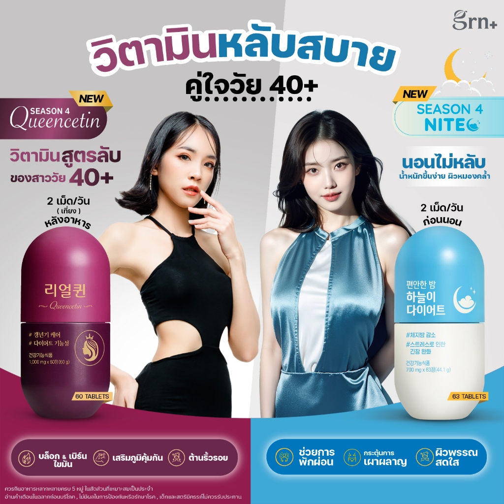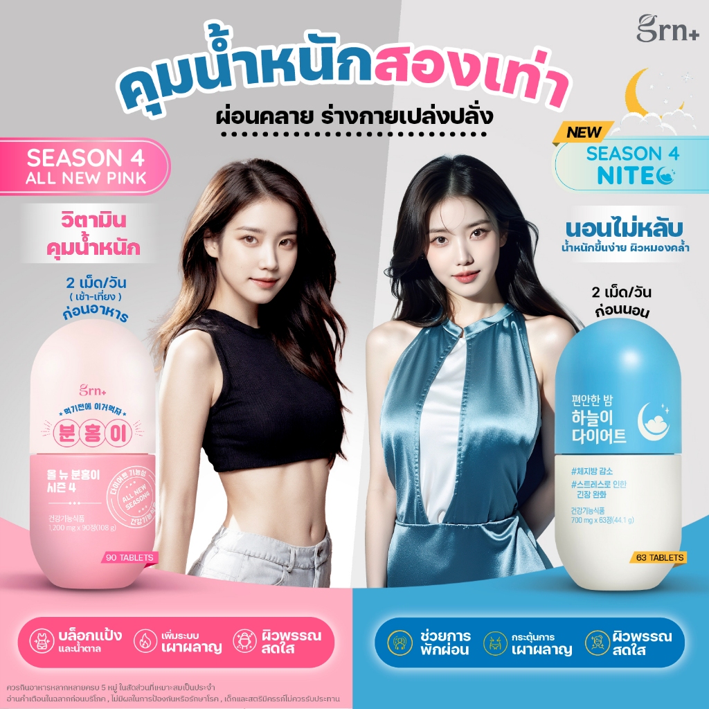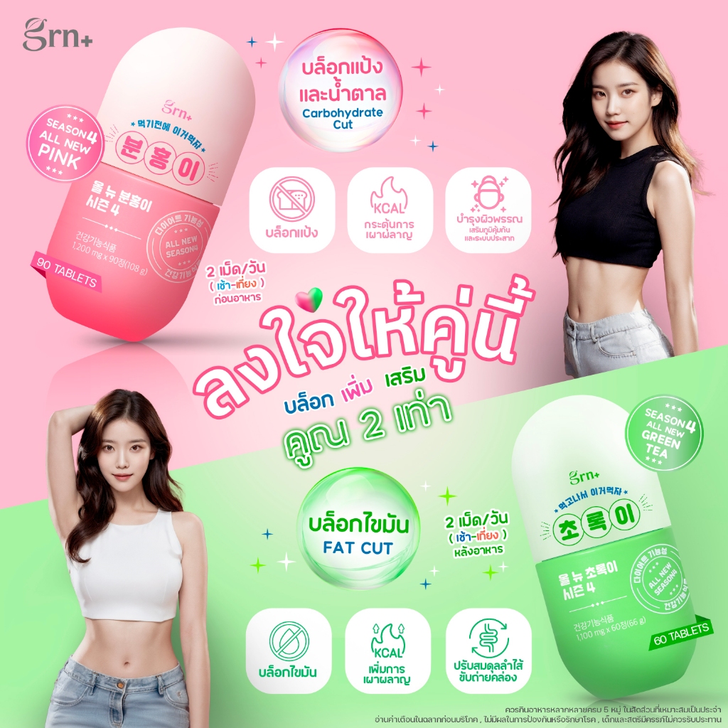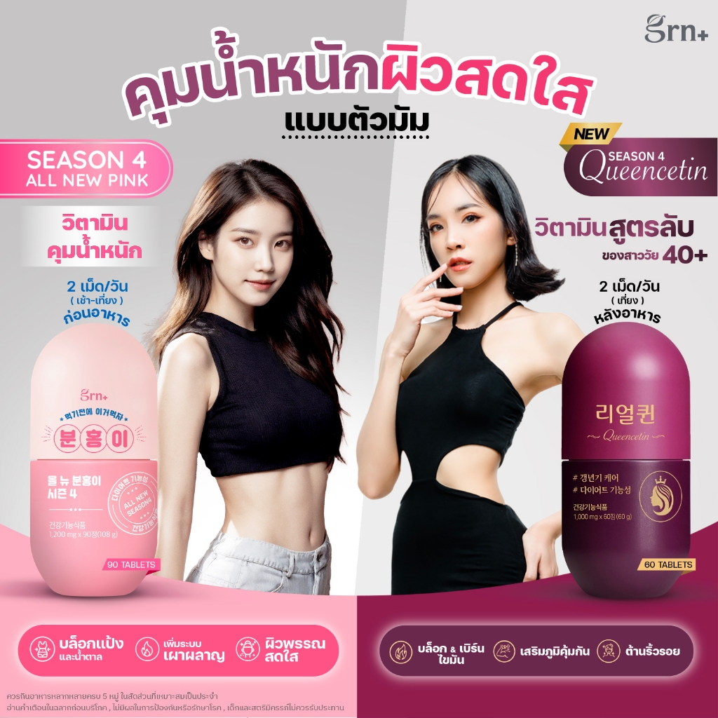 GRN+ [ 3 กระปุก ] Season 4 All New Pink และ Season 4 All New Green Tea อาหารเสริมเกาหลี วิตามินจองกุก ลด น้ำหนัก คุมหิว