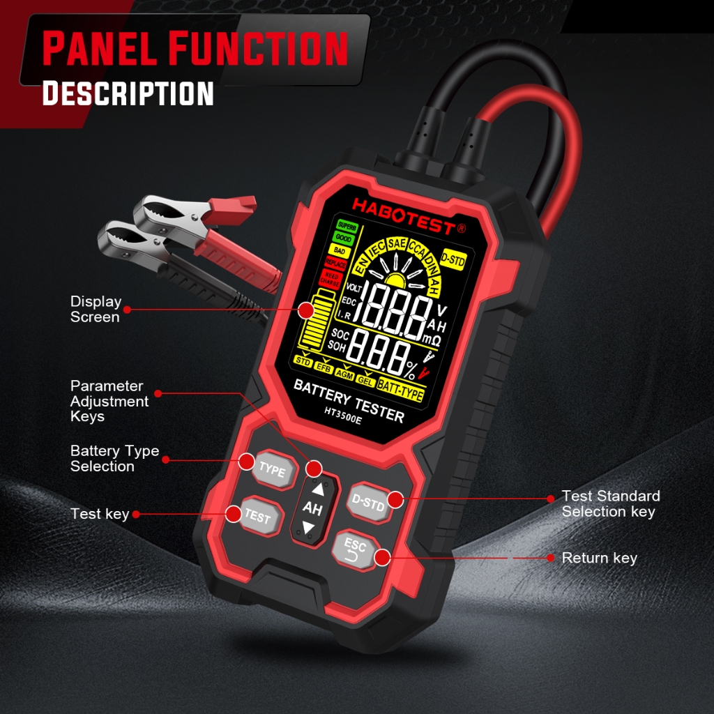 HABOTEST HT3500E เครื่องทดสอบเครื่องวิเคราะห์แบตเตอรี่รถยนต์สีดํา 8V-30V BM550 ระบบตรวจจับแบตเตอรี่ เค