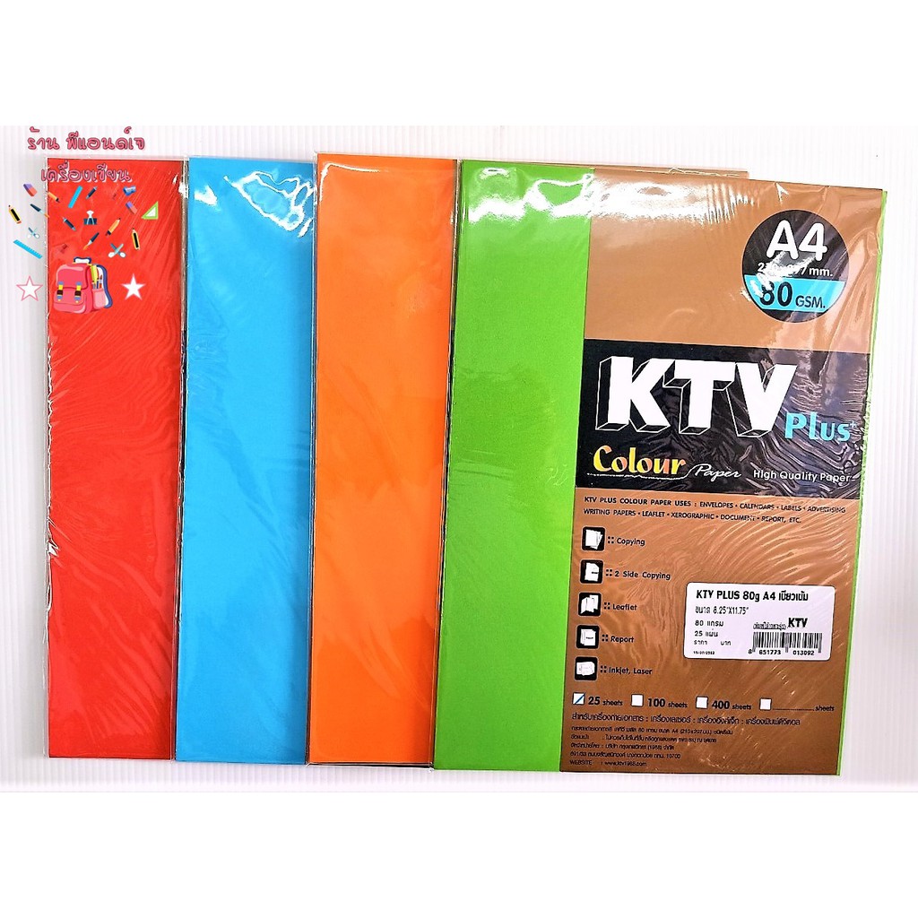 KTV (PLUS)กระดาษสีถ่ายเอกสาร A4 80แกรม 25แผ่น/แพ็ค