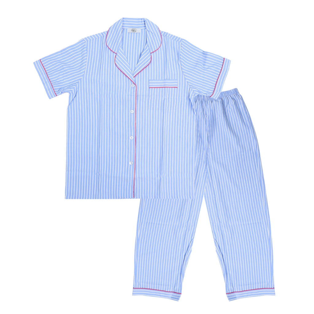 G&G ชุดนอน เสื้อแขนสั้นคอปก กางเกงขายาว ผ้าโพลีเอสเตอร์ EN4P012 สีฟ้า (BU)