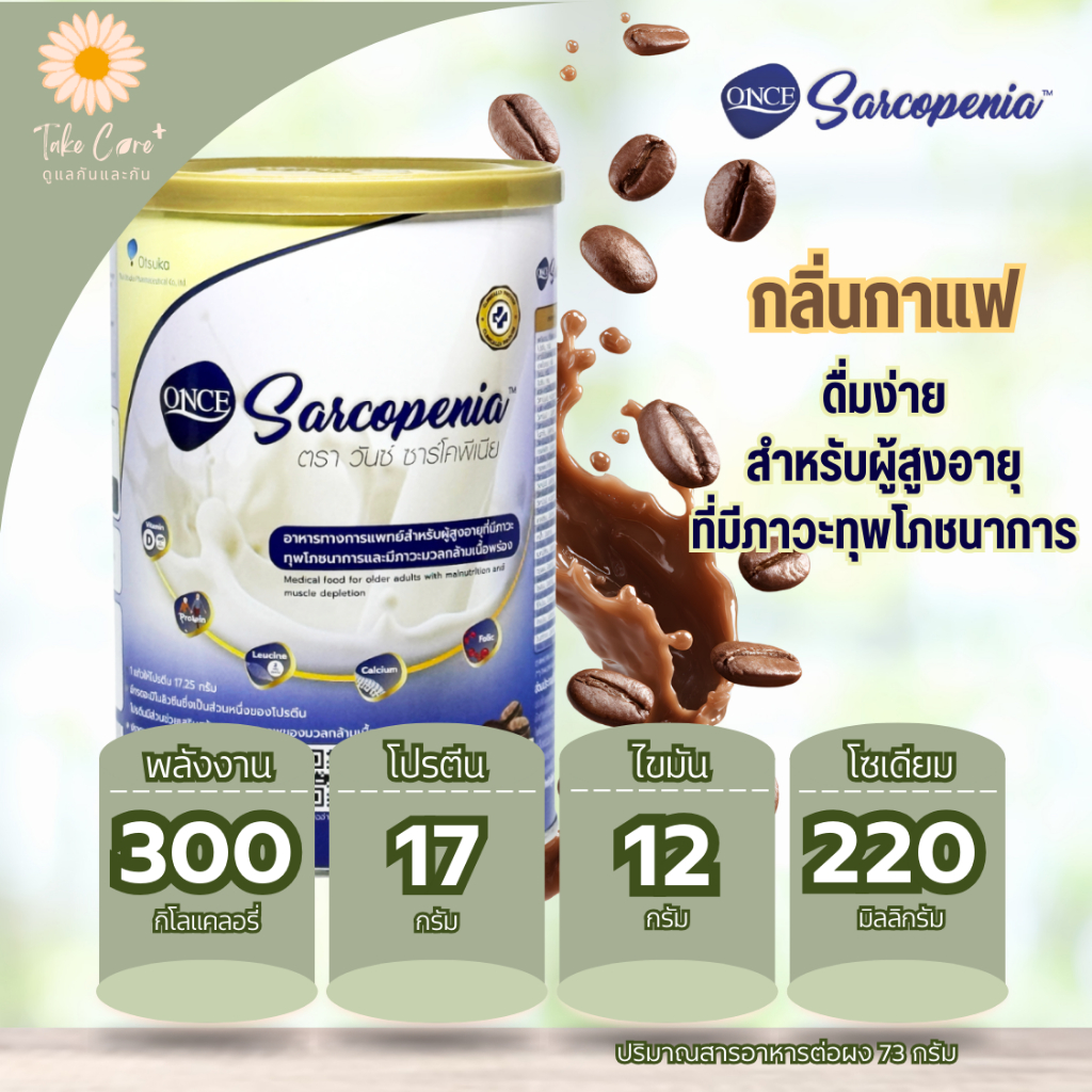 Once Sarcopenia อาหารทางการแพทย์ วันซ์ ซาร์โคพีเนีย กลิ่นกาแฟ 400 กรัม อาหารผู้สูงอายุ อาหารผู้ป่วย