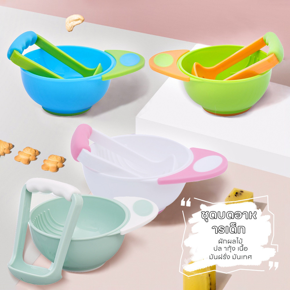 LAKOE ชามบดทารก ชุดบดอาหารเด็ก 2 ชิ้น ไม่มี BPA ปลอดภัยมากสำหรับเด็ก ถ้วยบดอาหาร บดละเอียด ใช้ง่าย โต๊ะอาหารสำหรับเด็ก