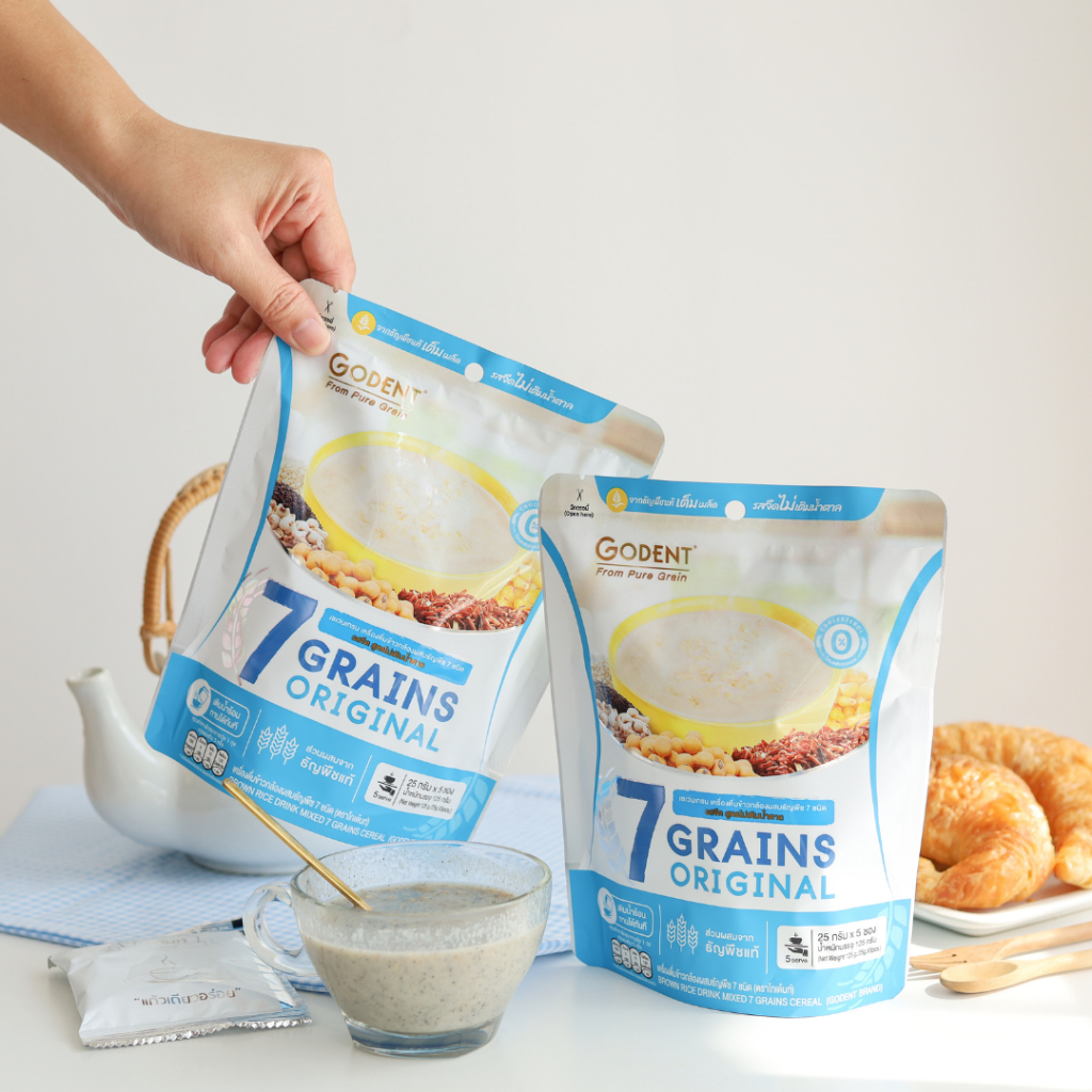 โกเด้นท์ เครื่องดื่มข้าวกล้องงอกปรุงสำเร็จ สูตรผสมธัญพืช 7ชนิด ไม่มีน้ำตาล (ขนาด 125 กรัม) จำนวน 5 ซอง/ถุง