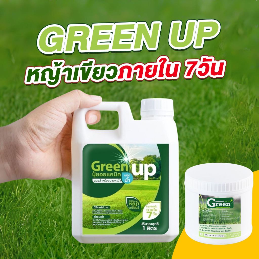 Green UP เซ็ทคู่หู [ชนิดผง+ชนิดน้ำ] บำรุงหญ้า เร่งหญ้าเขียว แก้หญ้าเหลือง สำหรับหญ้าทุกสายพันธุ์