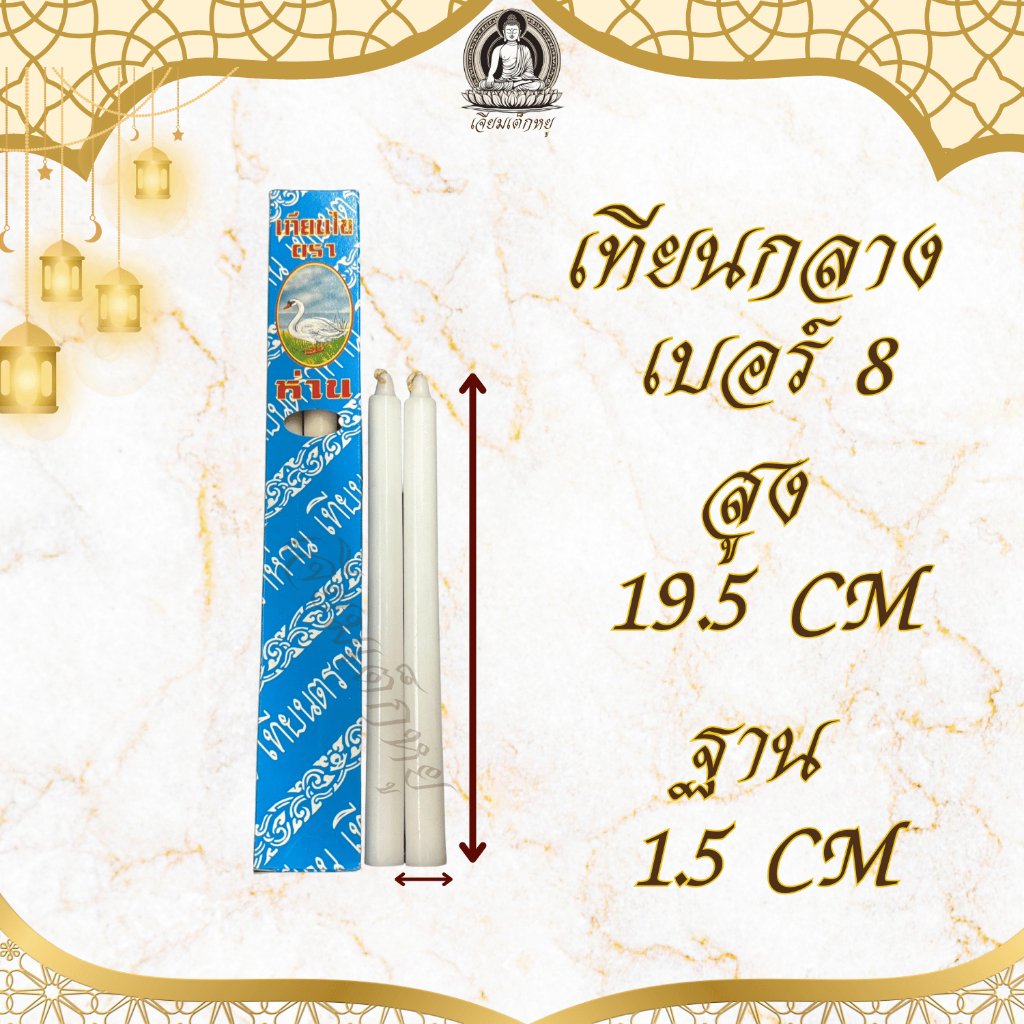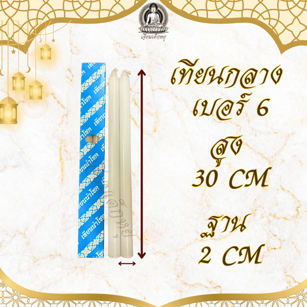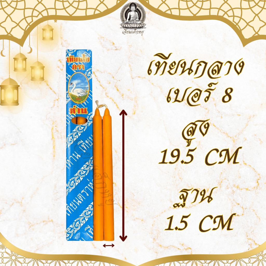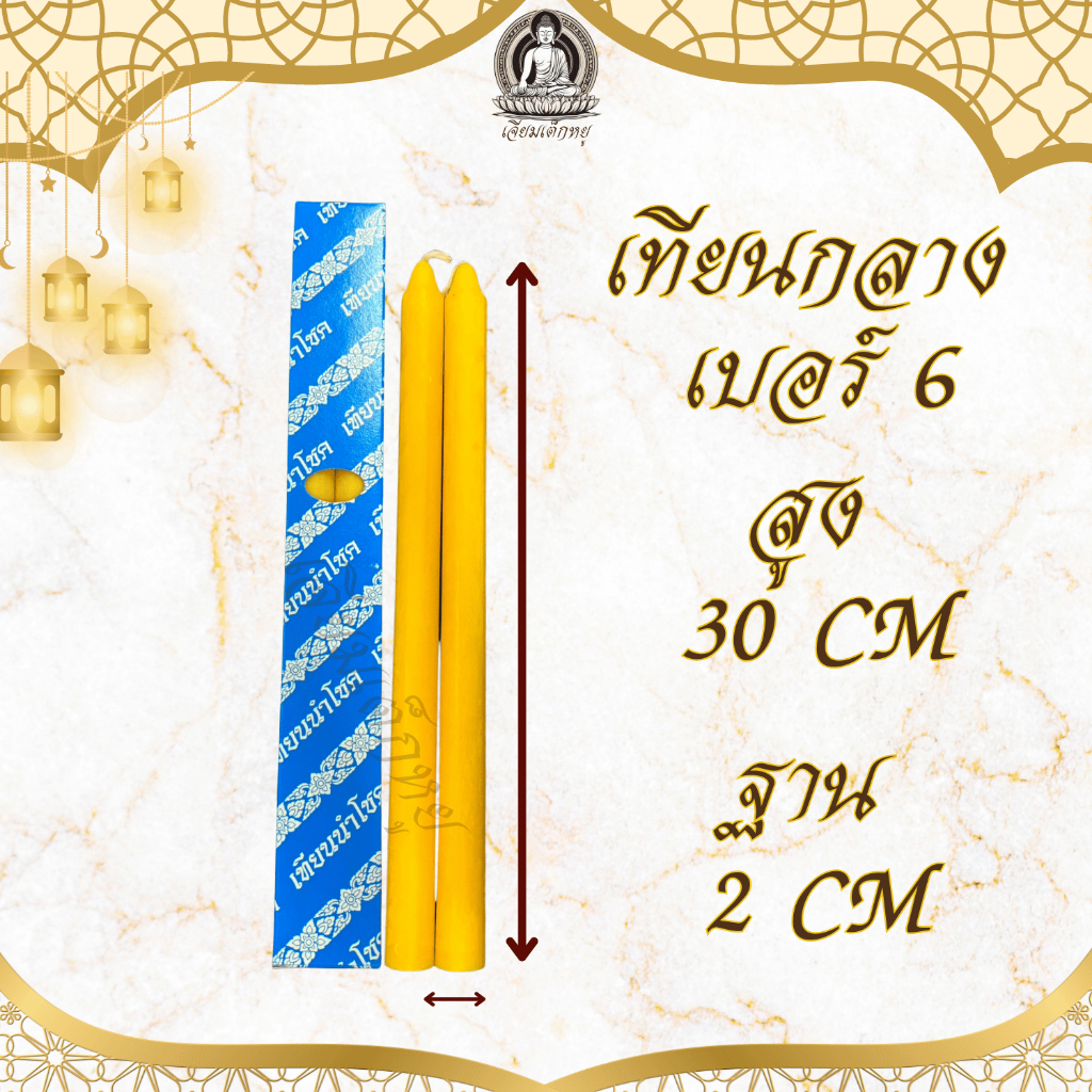 ตรานำโชค เทียนไหว้พระ ขนาดกลาง สีขาว/สีเหลือง