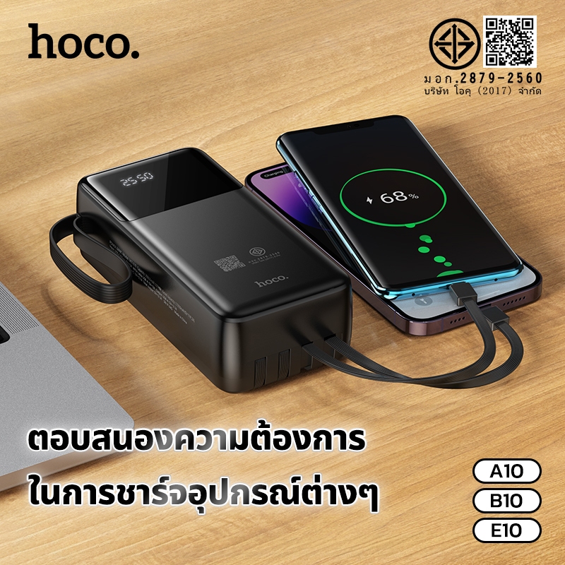 แบตสำรอง HOCO A10 B10 E10 Power Bank พาวเวอร์แบงค์ 10000mAh 20000mAh 30000mAh มีสายชาร์จในตัว มี LED