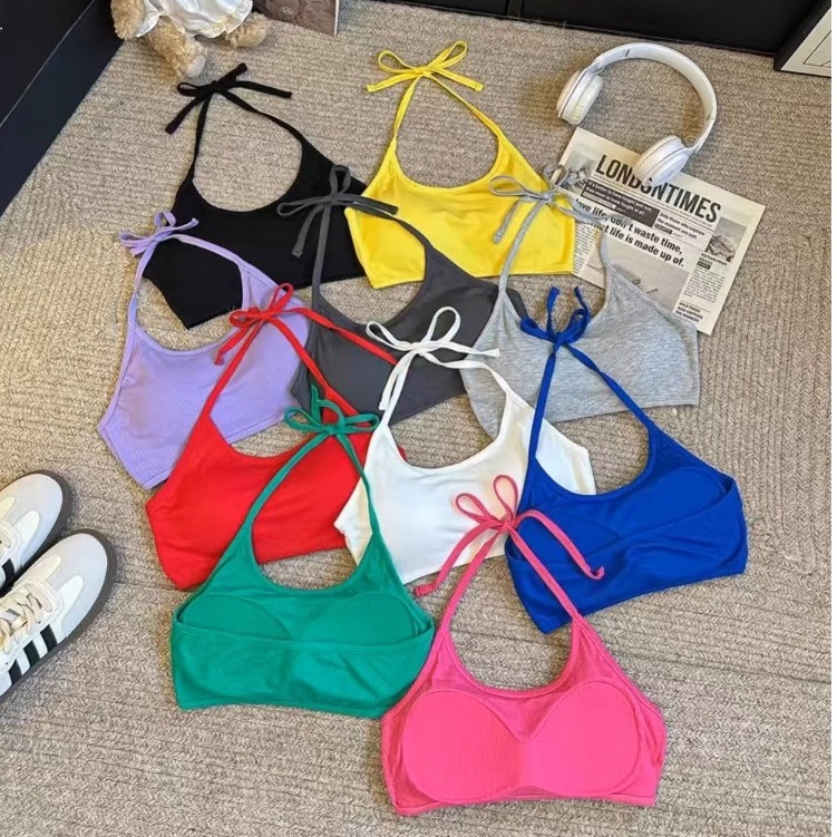 MKL พร้อมส่ง🚚 มินิครอปสายคล้องเป็นแบบผูก มีฟองน้ำในตัว ผ้านิ่มใส่สบายมีทั้งหมด10สี #J525