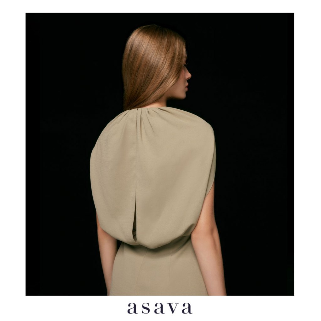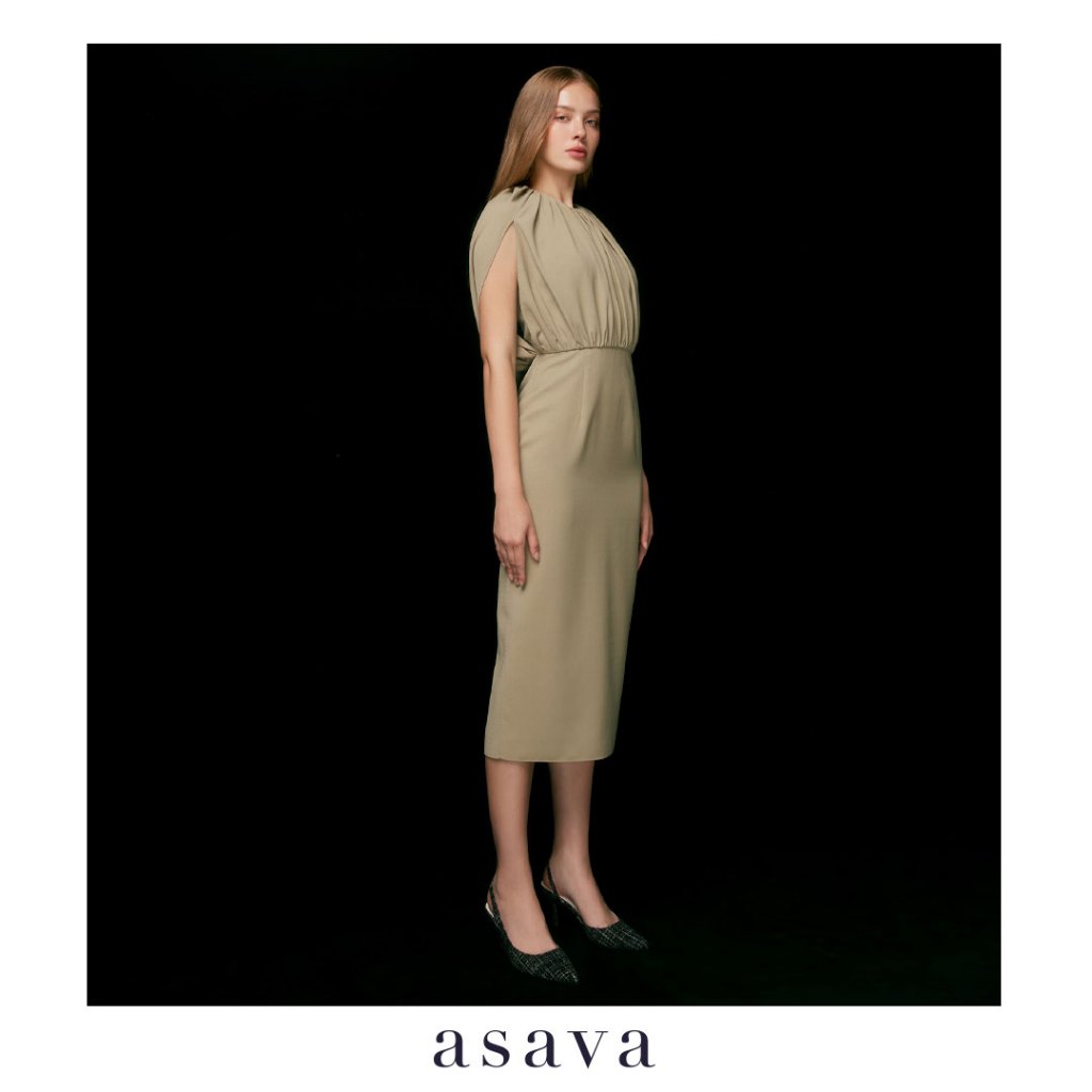[asava aw23] Harper Cape Sleeve Dress เดรสผู้หญิง แขนเคปสั้น แต่งดีเทลรูดด้านหน้า ผ่าหลัง ซิปหลัง