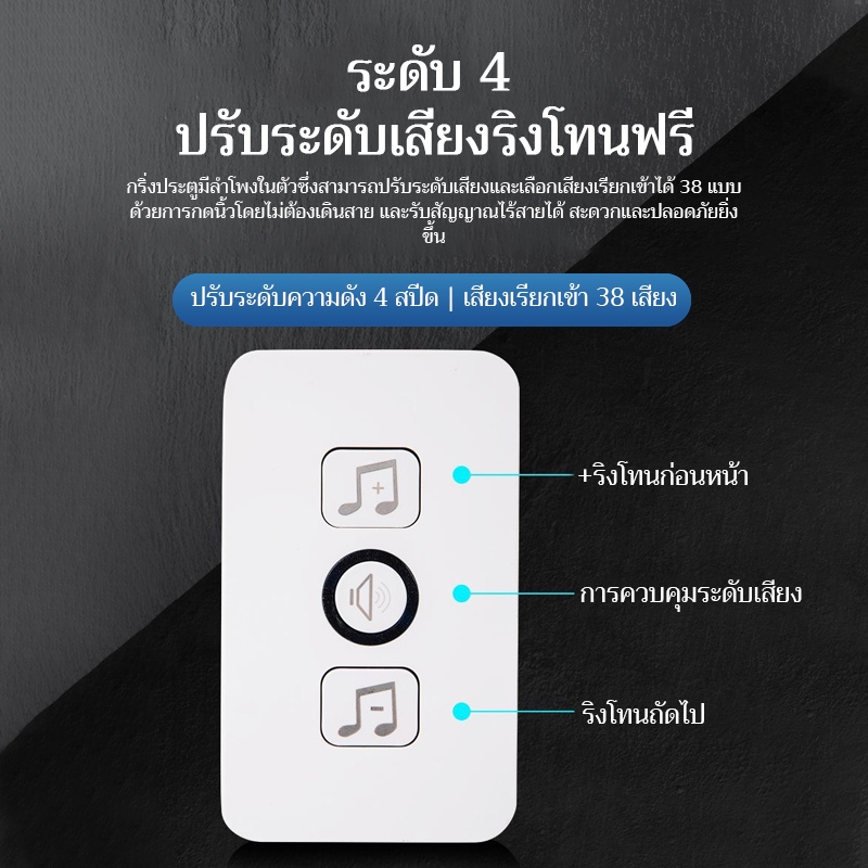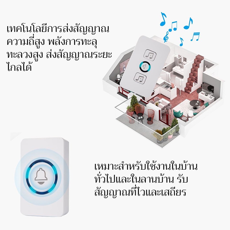 กริ่งประตูไร้สาย กันน้ำ ไม่ต้องใช้แบตเตอรี่ ใช้สำหรับบ้าน/ร้านค้า/สำนักงาน/อาหารค่ำ