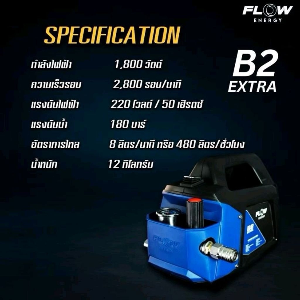 FLOW B2 Extra ชุดล้างรถทำโฟม ปรับแรงดันได้รุ่นอัพเกรด 30-180 บาร์ อุปกรณ์ครบชุด ของแท้มีรับประกัน Flow Energy