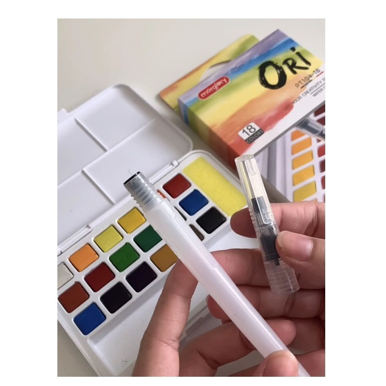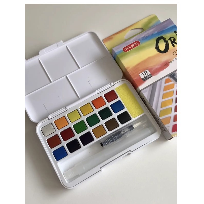 สีน้ำก้อน ตลับ โอริ ORI พร้อมพู่กันแทงค์และฟองน้ำ (ราคาต่อ 1 กล่อง)