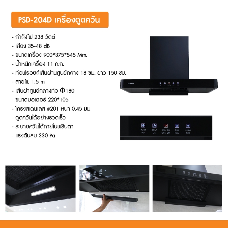 KASHIWA เครื่องดูดควันในครัว รุ่น PSD-204D ที่ดูดควัน PSD204D ฮูดดูดควัน hood ดูดควัน ห้องครัว