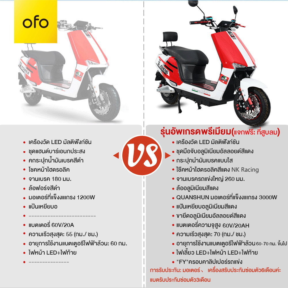 OFOEBIKE มอเตอร์ไซไฟฟ้า3000W60V20AH รถมอเตอร์ไซค์ไฟฟ้า ความเร็ว70กม. /ชม. มอเตอร์ไซค์ ไฟฟ้า แจกฟรีหมวกกันน็ รับประกัน