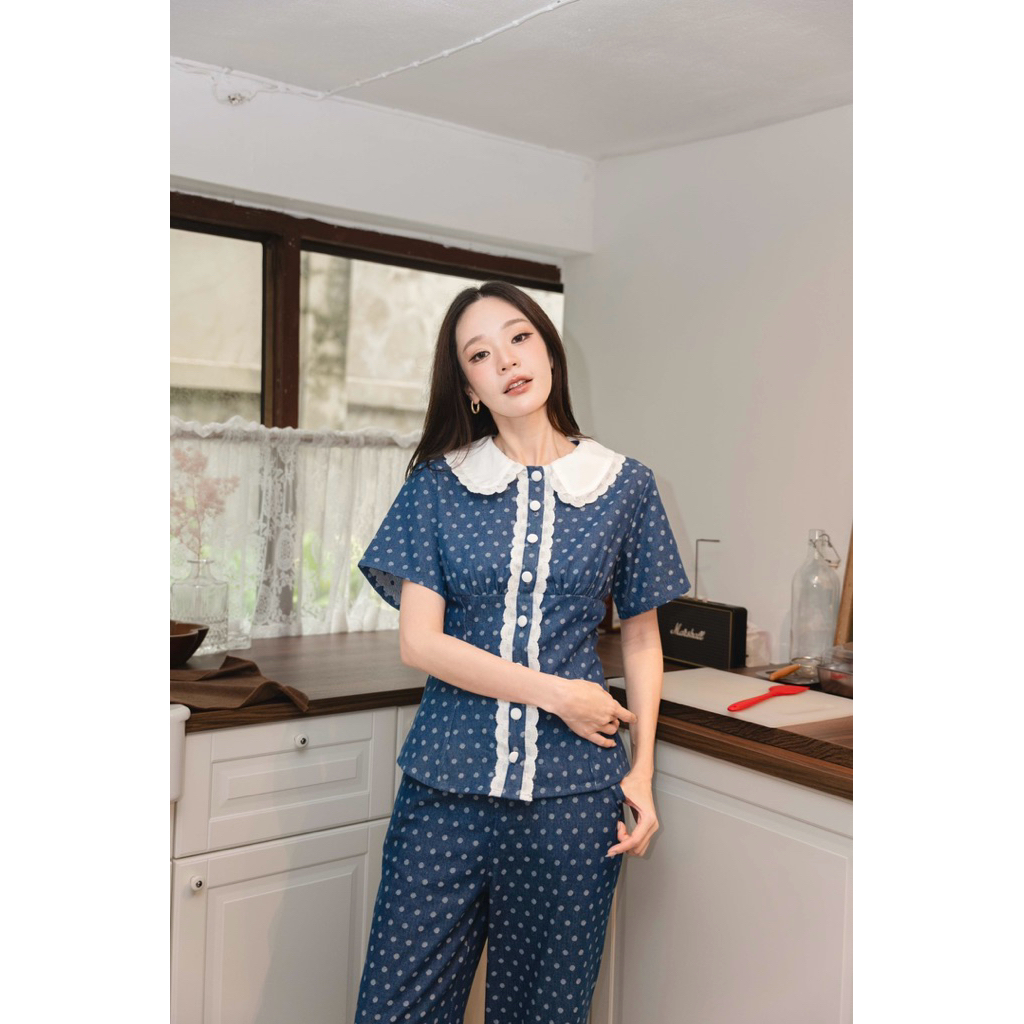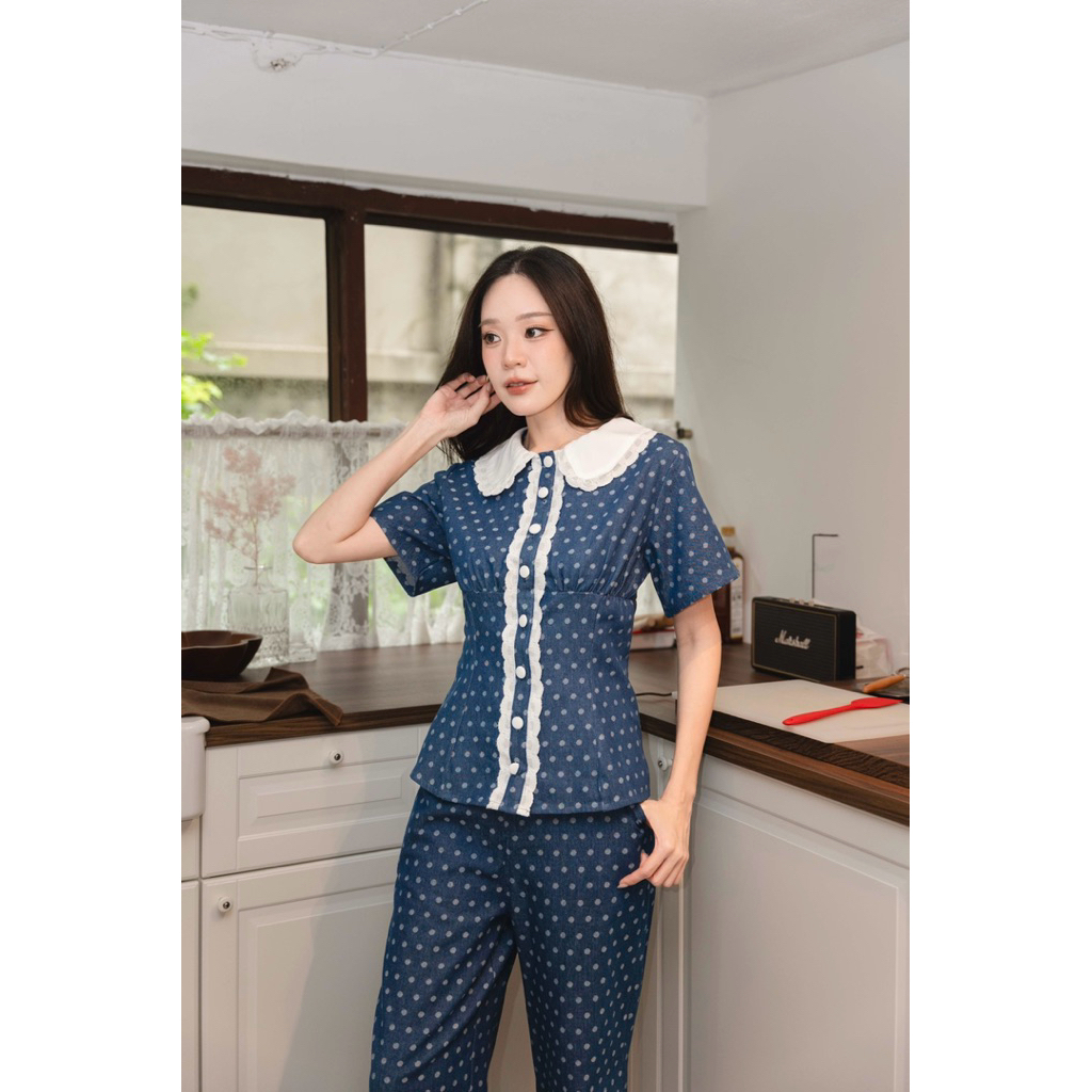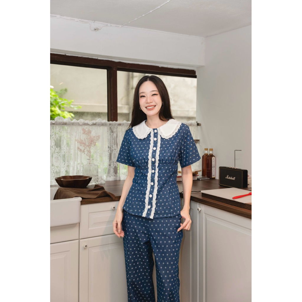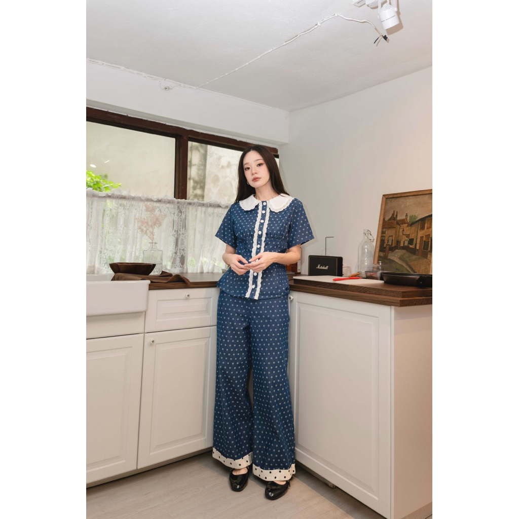 ร174 polka dot set ผ้ายีนส์ลายจุดขายาวน่ารัก