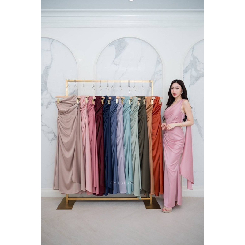 D343 s-2xlราตรีออกงาน เดรสยาวไปงาน ชุดเพื่อนเจ้าสาวสไบสีเยอะมากกค่า