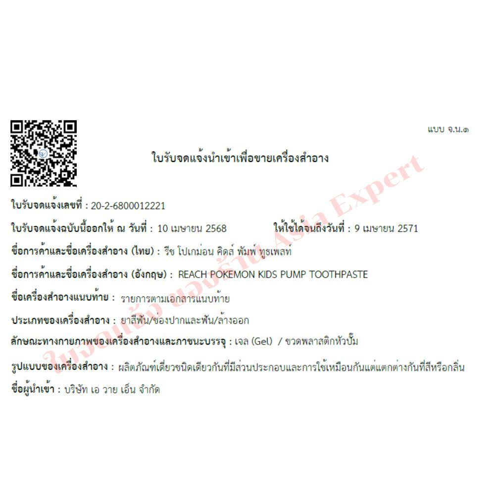 REACH Pokemon Toothpaste For Kids 250g 2ชนิด ยาสีฟันเด็กแบบเจลขวดปั๊ม