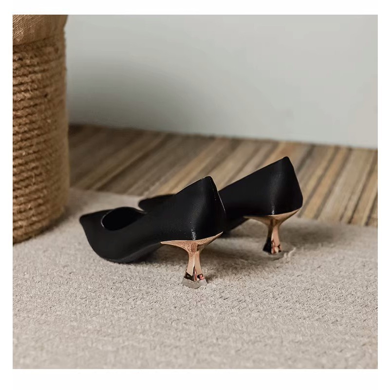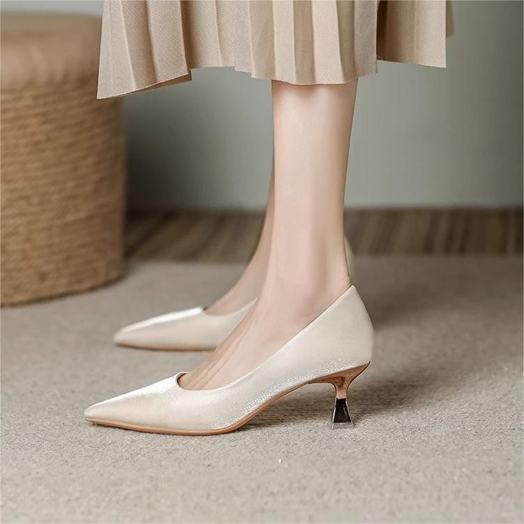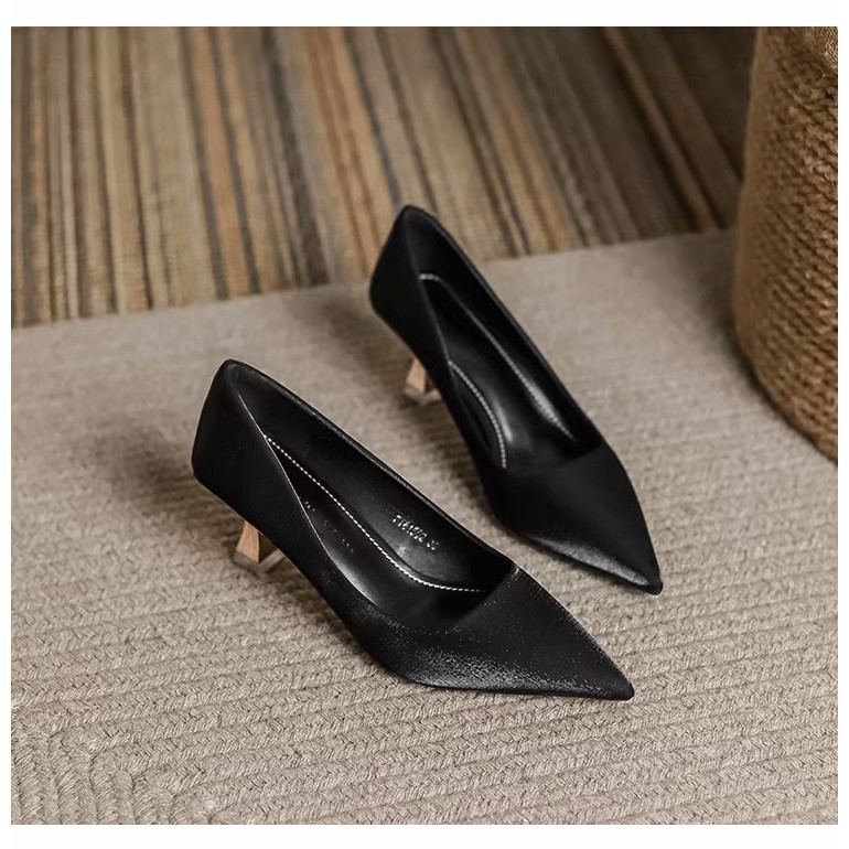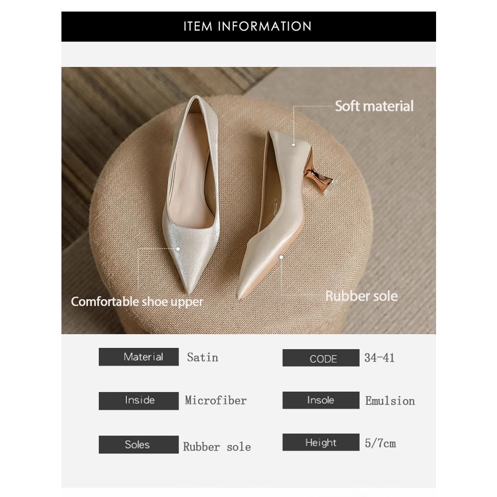 [LS] ซาตินปิดรองเท้าส้นรองเท้าชี้นิ้วเท้าส้นกริชรองเท้าสํานักงานอย่างเป็นทางการสําหรับผู้หญิง