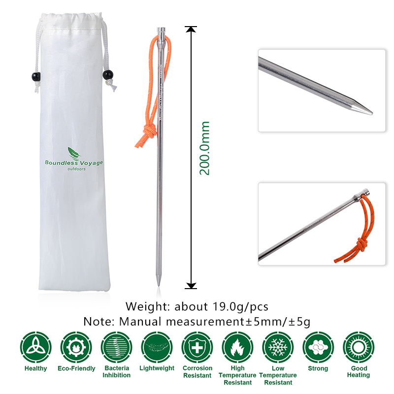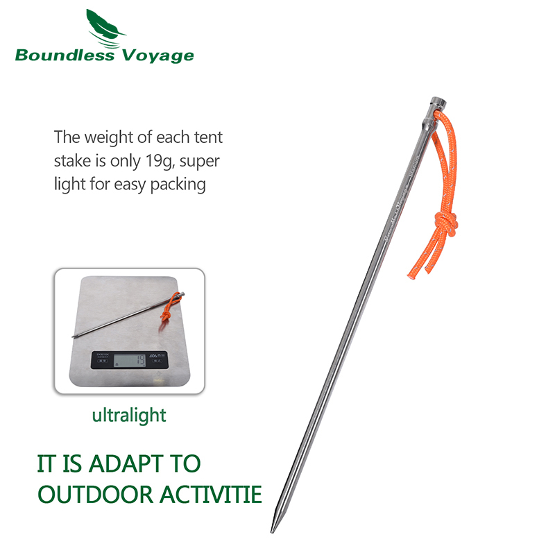 Boundless Voyage ไทเทเนียมเต็นท์เล็บ 20 ซม.ยาวกลางแจ้ง Camping เต็นท์อุปกรณ์เสริม Stakes หมุดสําหรับ Hard Ground Solid Ti4006P
