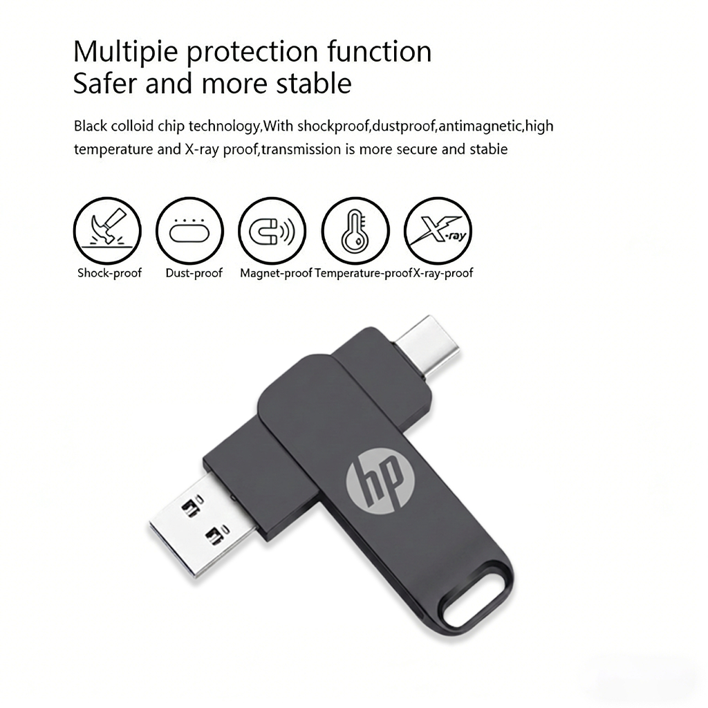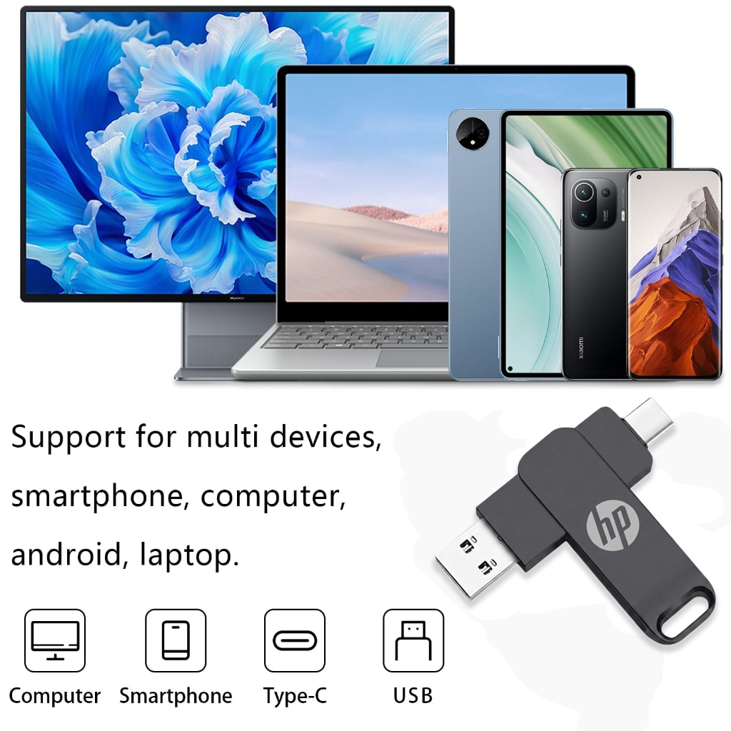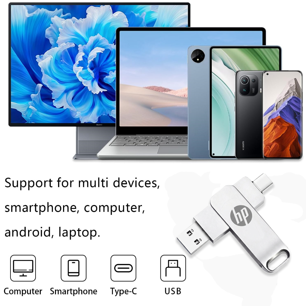 Typec 2 in 1 HP โทรศัพท์มือถือดิสก์ HP คุณภาพสูงไดรฟ์คู่หน่วยความจําแฟลช USB 3.2 1TB/2TB หน่วยความจําความเร็วสูง Stick Data Drive otg แฟลชไดรฟ์โลหะกันน้ําแบบพกพา