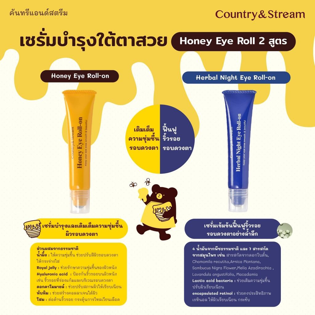 Country&Stream Herbal Night Eye Roll-on เซรั่มบำรุงสูตรพิเศษนี้ผสานน้ำผึ้ง เรทินอล