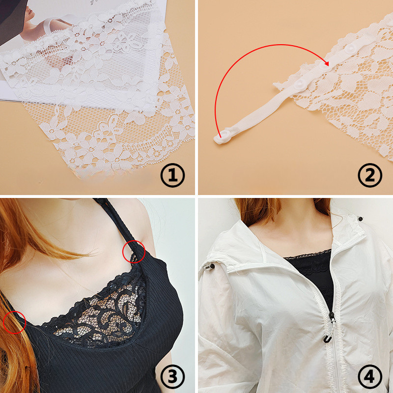 Zxyouping ผู้หญิง Sheer ตาข่าย Plunge Protector ลูกไม้ Neckline Modesty ใส่เพื่อป้องกัน