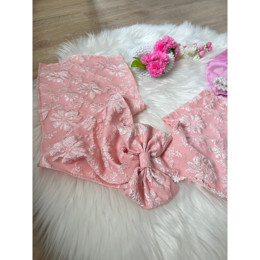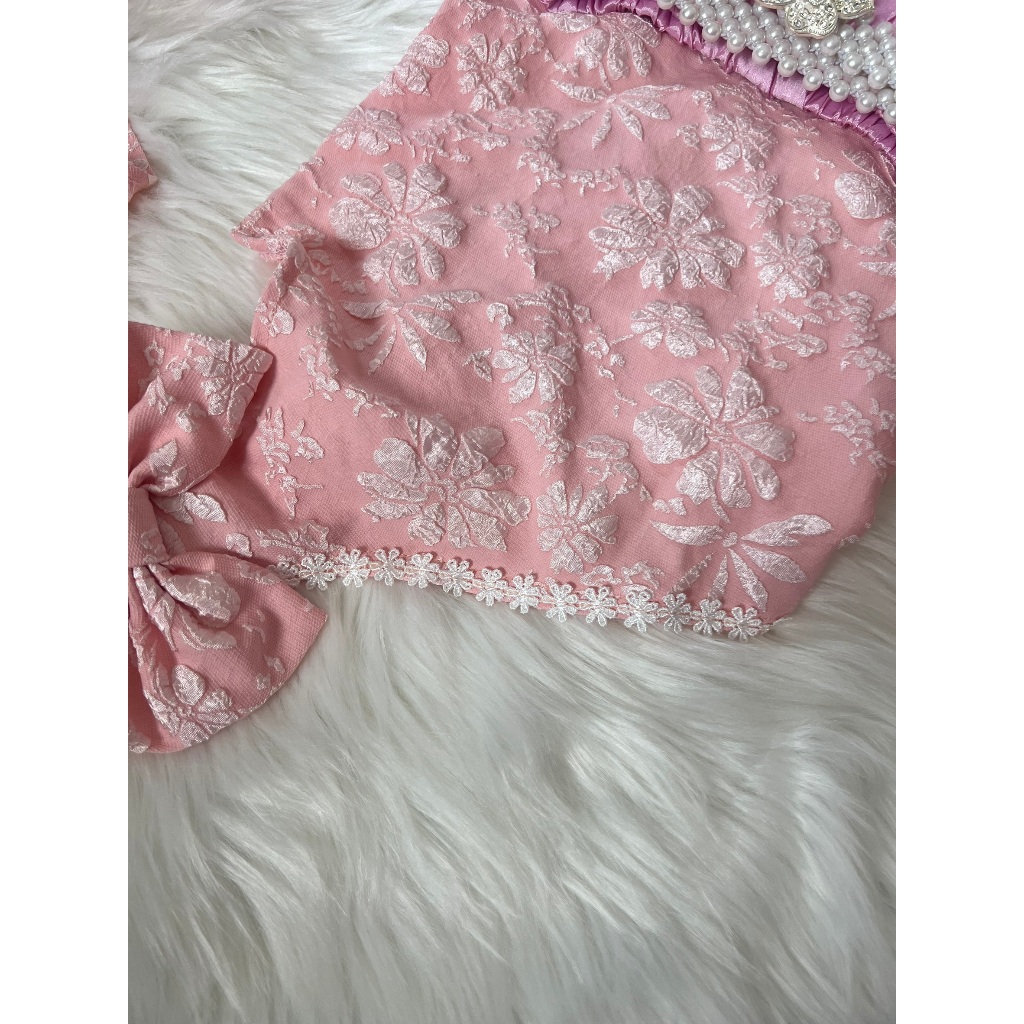 สไบโบว์ลายดอกเด็กผ้าแจ็คการ์ด สไบสำเร็จรูป FV98