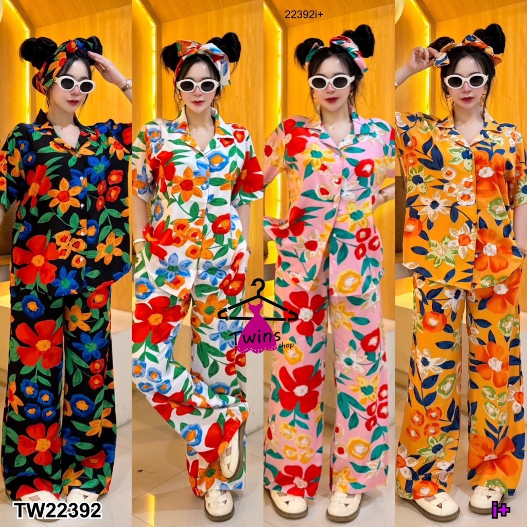 set 3 ชิ้น เสื้อปกฮาวาย ลายดอกไม้ + กางเกงขายาว กับสายโบว์ TW22392 TwinsShopVip💗พร้อมส่ง