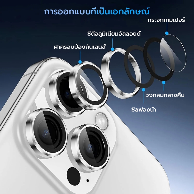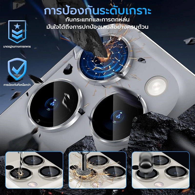 X-IT สําหรับ iPhone 17 air 11 12 13 14 15 16 16e Pro Max ตัวป้องกันเลนส์กล้อง, ติดตั้ง 1 วินาที] ฝาครอบกระจกนิรภัย Ultra-HD, วงแหวนป้องกันหน้าจอเลนส์โลหะ,ไทเทเนียมสีขาว