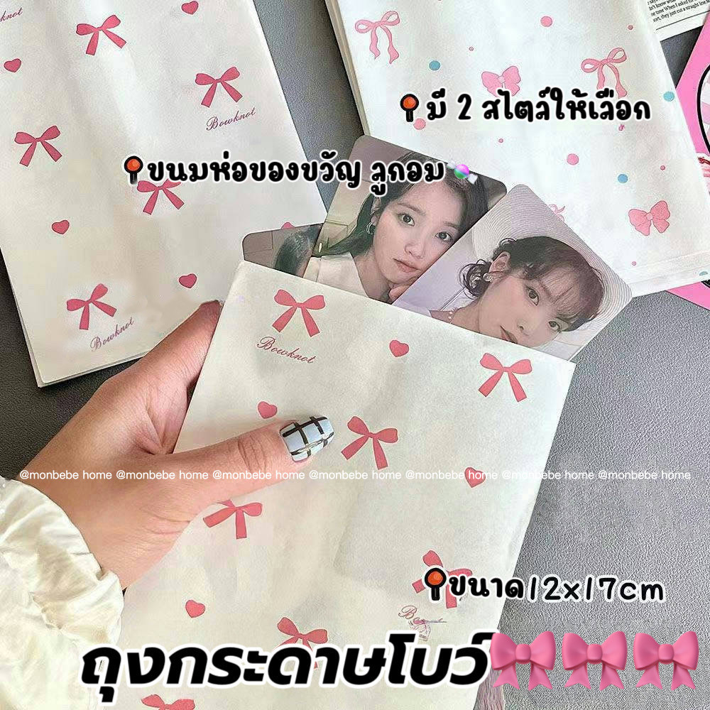 ถุงกระดาษ ถุงกระดาษของขวัญ ลายโบว์น่ารัก ขนาด17*12cm ราคา10ชิ้น