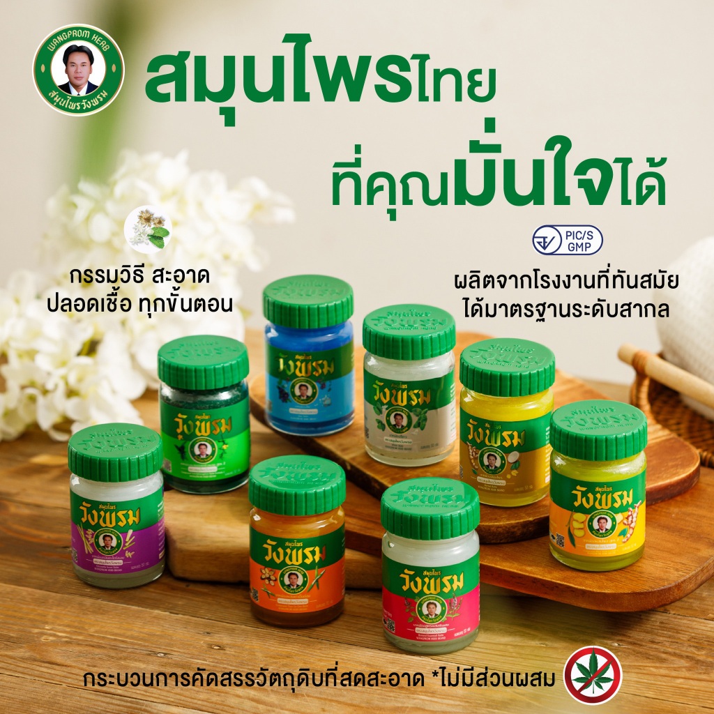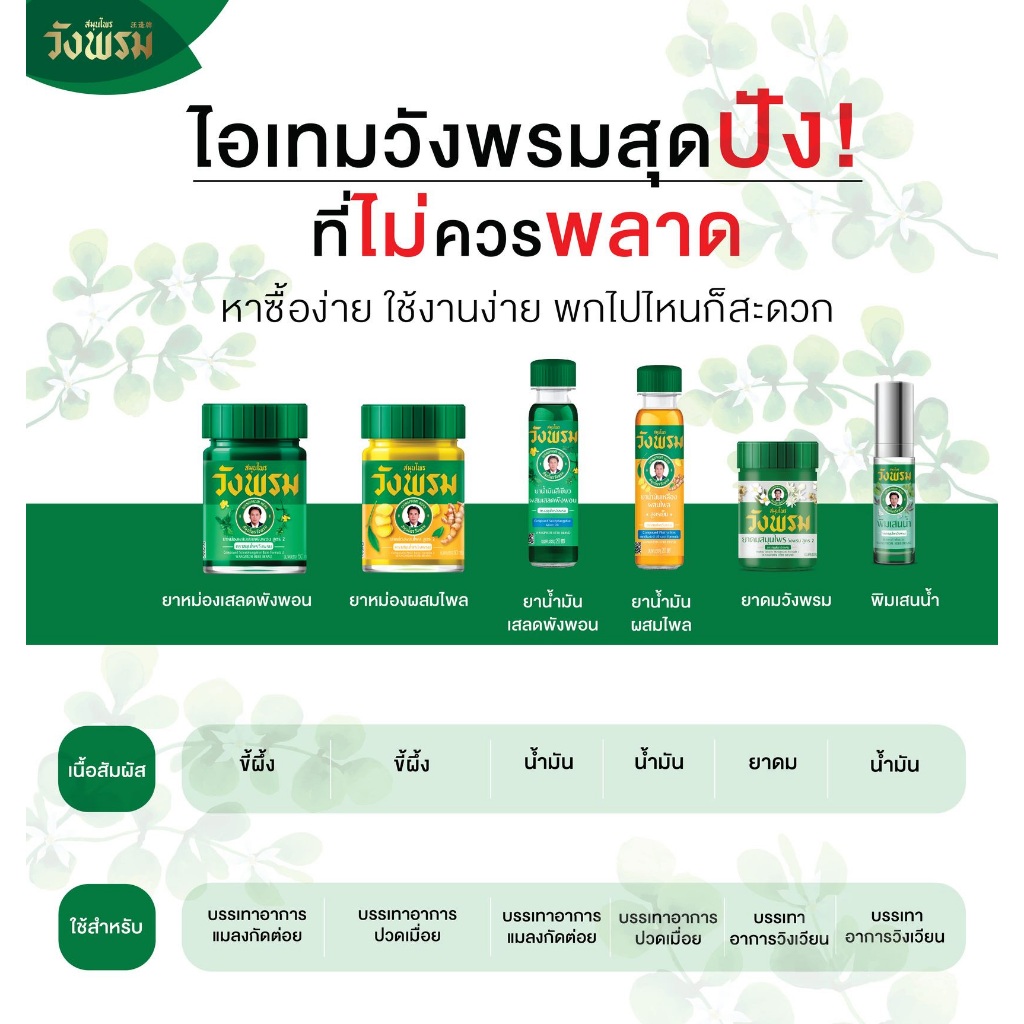 Wangprom Herb สมุนไพรวังพรม พิมเสนน้ำ/น้ำมันเหลือง/น้ำมันเขียว/ยาหม่อง [สินค้ามีให้เลือก 7 แบบ] พิมเสนน้ำวังพรม