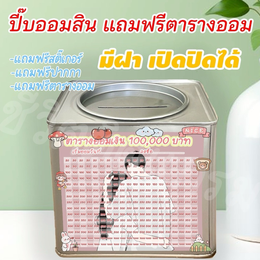 ออมสินเปิดได้(เฉพาะ15 CM, 23 CM)แถมฟรีตารางออมเงิน +สติกเกอร์ตกแต่ง ตารางออมแบบเดือน ปี๊บออมสิน กันน้ำไม่เป็นสนิม