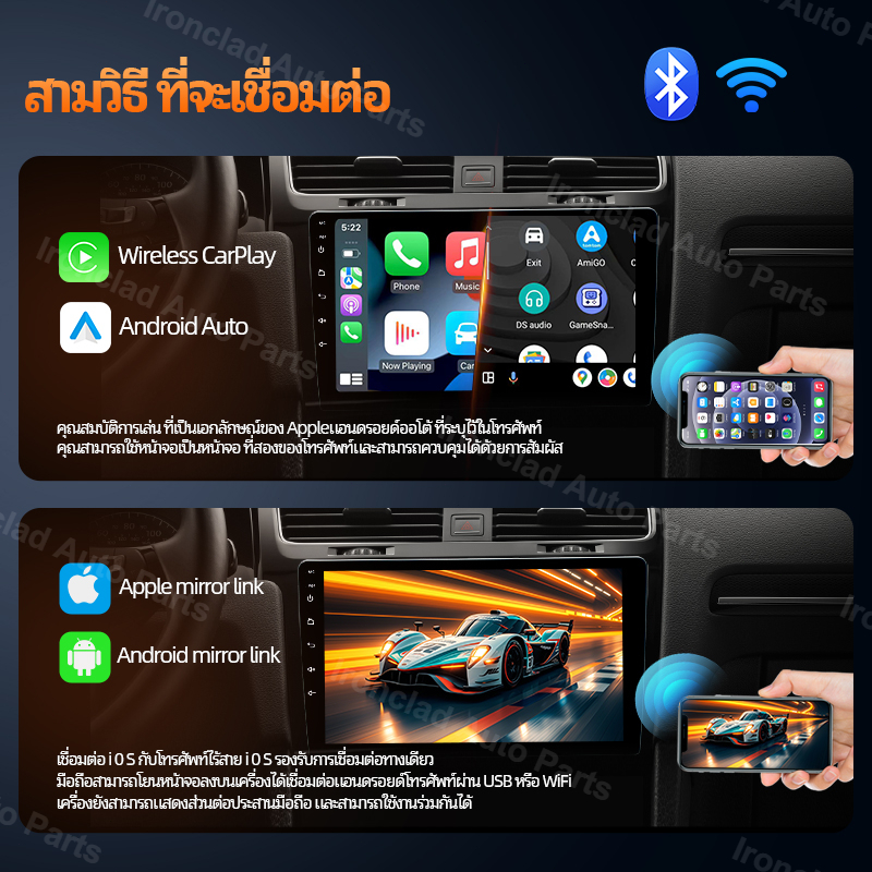 8Core 8+64G+กล้องหลังฟรี จอ android รถยนต์ ระบบทำความเย็น การควบคุมพวงมาลัย Android Auto CarPlay GPS Wifi 7/9/10นิ้ว