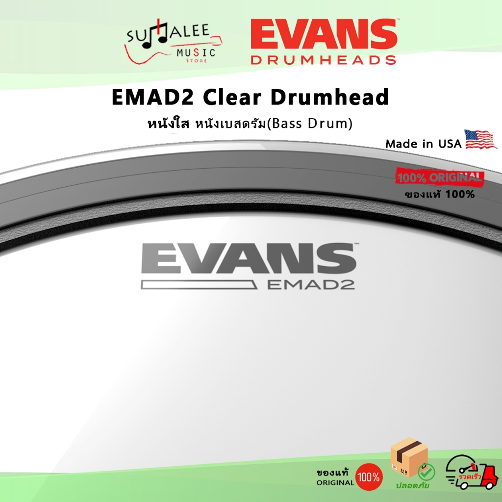 หนังเบสดรัม EVANS EMAD2 Clear Bass Drumhead 22" Bass Batter หนังใสฝั่งกระเดื่อง Made in USA แท้ 100%