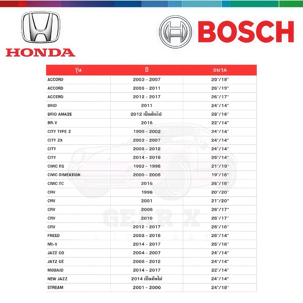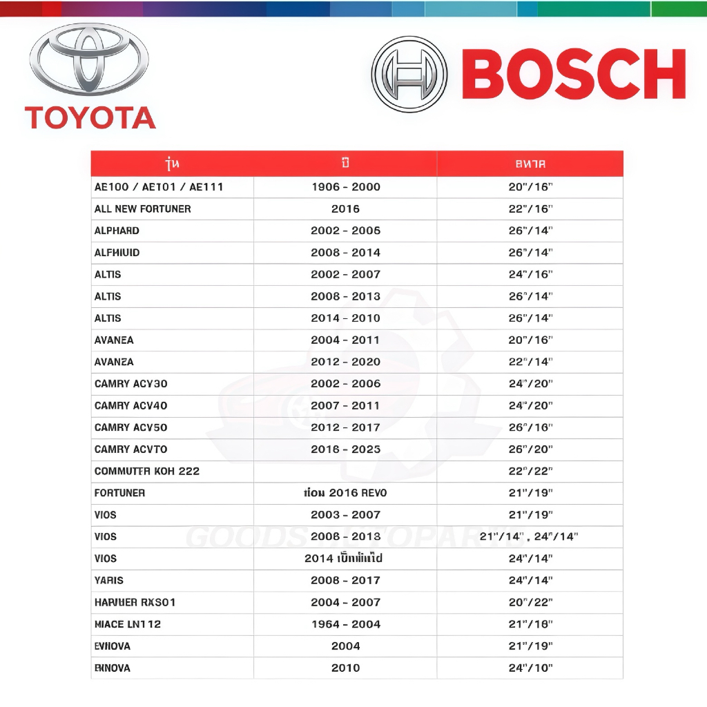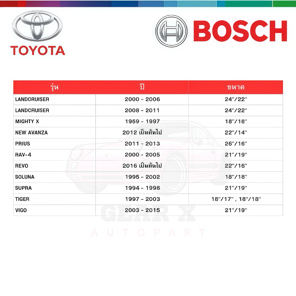 ใบปัดน้ำฝน Bosch แท้ 100% รุ่น Advantage ใบปัดคู่ U-Hook สำหรับ Vios Yaris Civic Mazda Dmax 12-26 นิ้ว ปัดเงียบ ไม่สะดุด