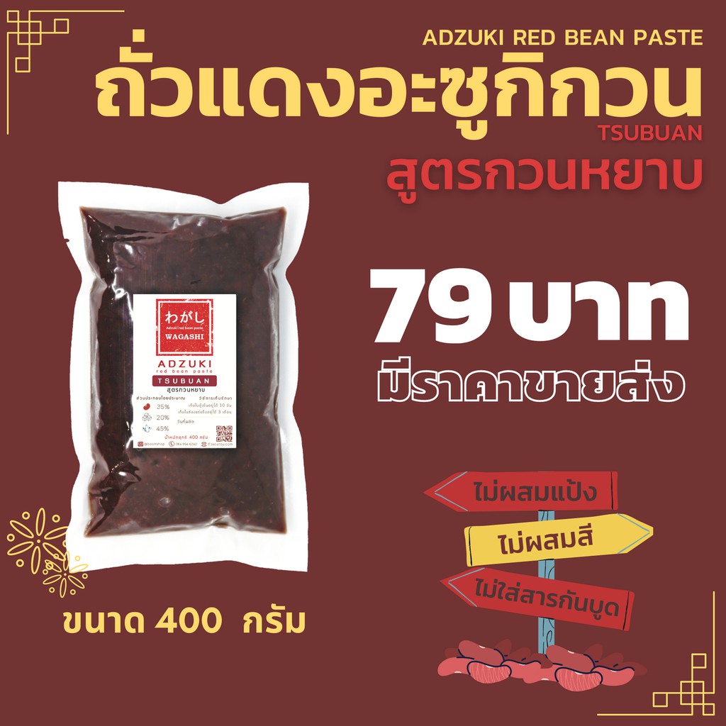 ถั่วแดงอะซูกิกวน สูตรกวนหยาบ ไส้ถั่วแดง ถุงเล็ก 300 กรัม ตราวากาชิ | Tsubuan Red Bean Paste Wagashi