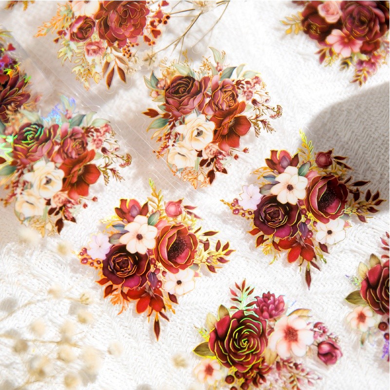 Mr.paper 200 ซม./โรล กันน้ำร้อน เทปกาว โรแมนติกกุหลาบ ลิลลี่ โบว์แลนด์ ลวดลายดอกไม้ตัดเทป ใช้สำหรับติดกระดาษมือ โทรศัพท์มือถือ การ์ดอวยพร แก้ว เทปตก แต่ง