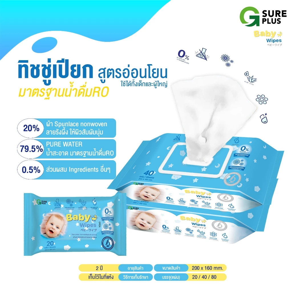 G SURE PLUS ฺ" ทิชชู่เปียกสำหรับเด็ก " BABY Wipes (สินค้าตามตัวเลือก)