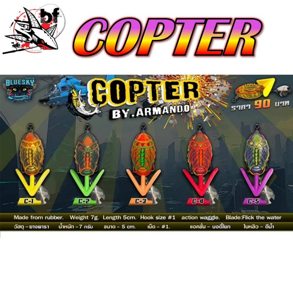 เหยื่อยาง Armando COPTER ขนาด 5cm.น้ำหนัก 7กรัม เบ็ด #1 บอดี้โยก ใบหลิวตีน้ำ คอปเตอร์