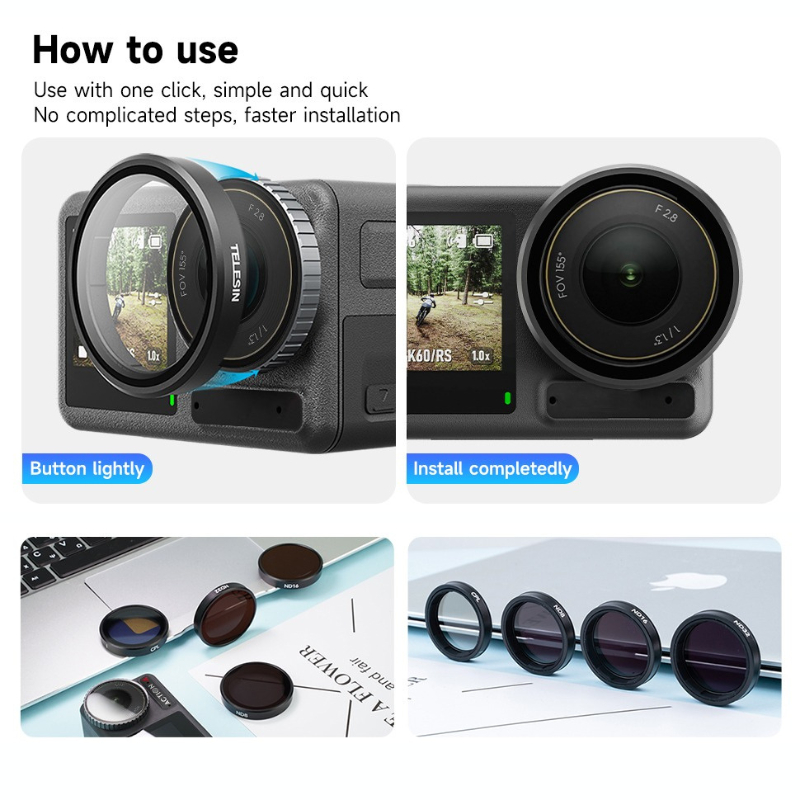 Telesin CPL+ND8/16/32 Lens filter kit for DJI Osmo Action 5Pro/4/3 (AGC Glass)