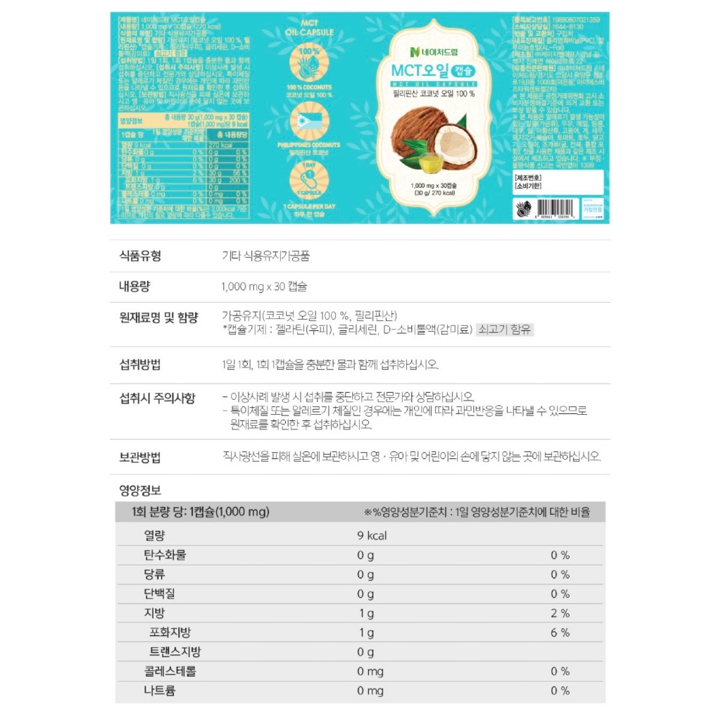 พร้อมส่ง Nature Dream MCT Oil Capsule น้ำมันมะพร้าวสกัดเย็น 100% ของแท้จากเกาหลี