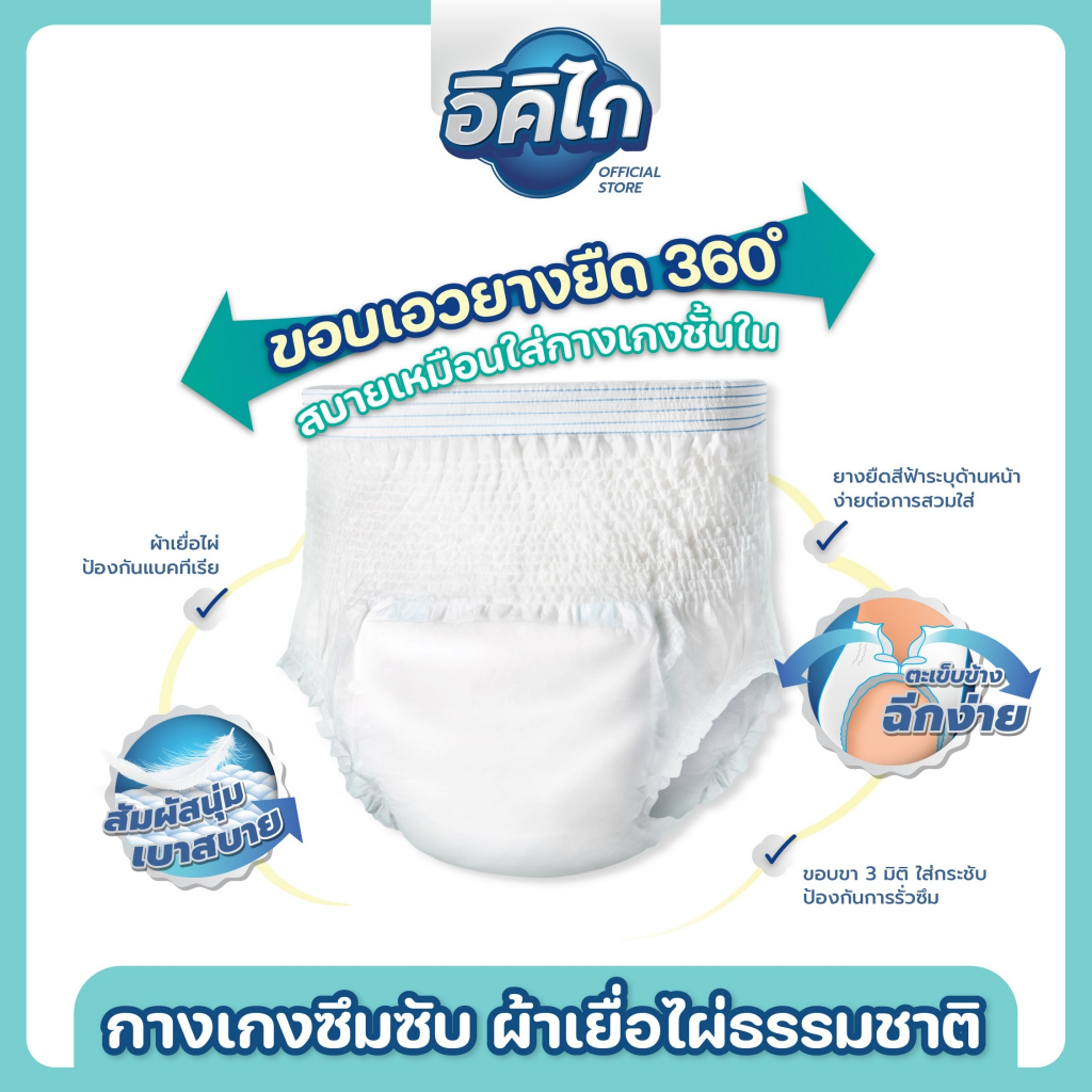 ผ้าอ้อมกางเกงผู้ใหญ่ อิคิไก เยื่อไผ่ธรรมชาติ ซึมซับไว แบบบาง นุ่ม คุณภาพสูง ขนาด XL 16ชิ้น ส่งฟรี