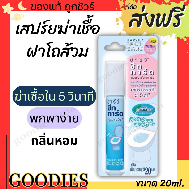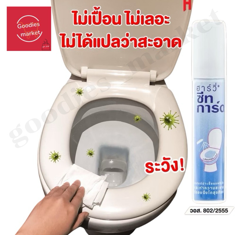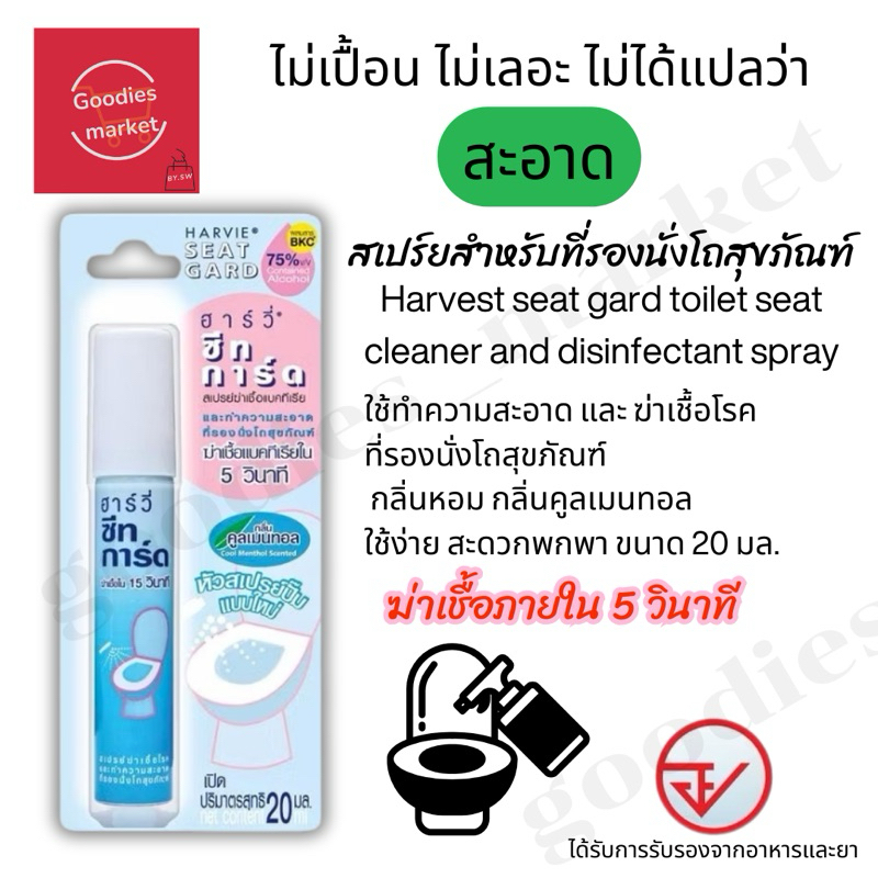 ทำความสะอาดที่รองนั่งโถส้วม Harvie (ฮาร์วี่) Seat Guard น้ำยาฆ่าเชื้อแบคทีเรียบนพื้นผิว ภายใน5วิ แอลกอฮอล์75% ขนาด 20ml.