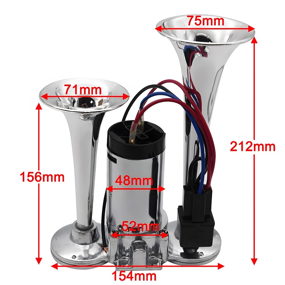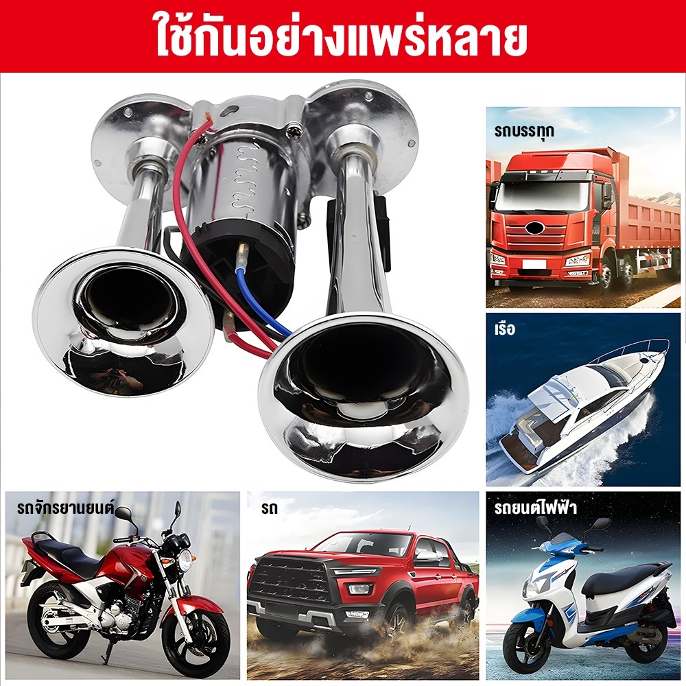 แตรลมไฟฟ้า 12V-24V แตรลม 600db แตรลมรถบรรทุก30W 300db ปากคู่ 2ปาก 12V (สีเงิน)เสียงดังสุดยอดแบนด้านล่างรถแตรอากาศชุ