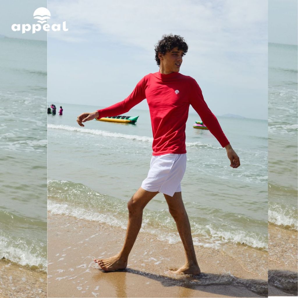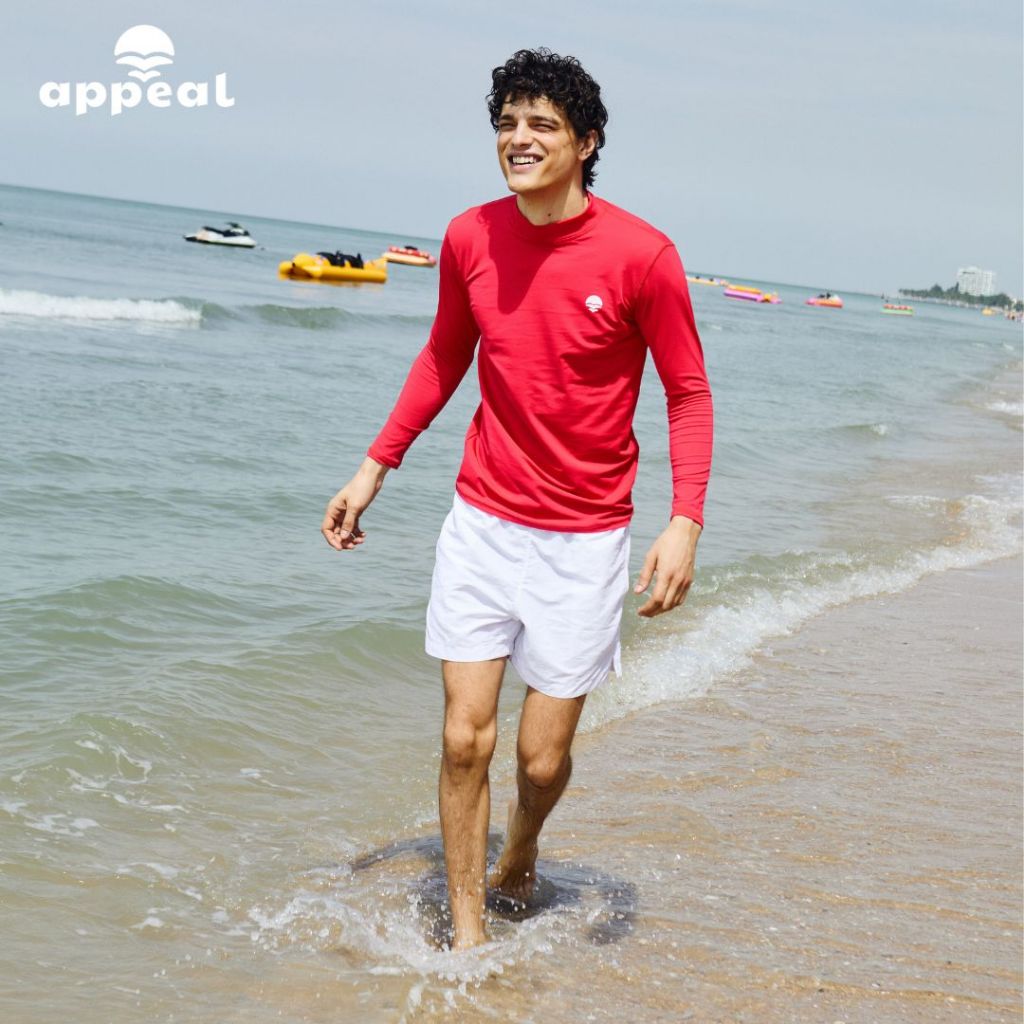 ☀️APPEAL🌊 [Men] Every Moment Rashguard เสื้อว่ายน้ำสีแดง เสื้อว่ายน้ำแขนยาว แรชการ์ด ผู้ชาย กันUV มีซับใน AP14650 แดง
