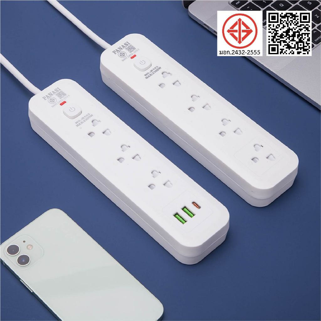 ปลั๊กไฟ usb ปลั๊ก3/4/5ตา power socket พร้อมสวิตช์ปิดเปิด มาตรฐาน มอก. ตัดไฟได้ 2/3/5/10เมตร