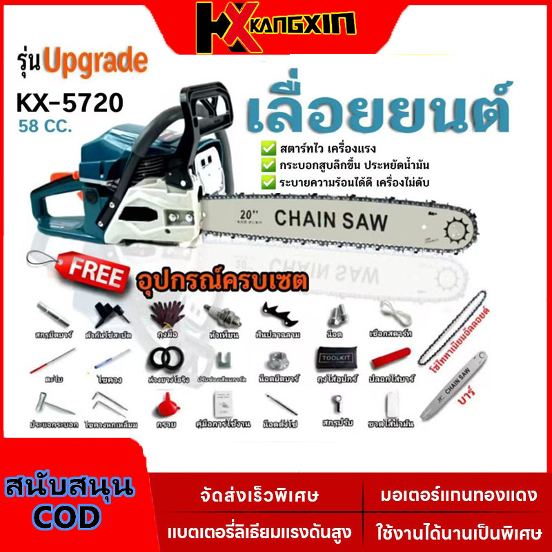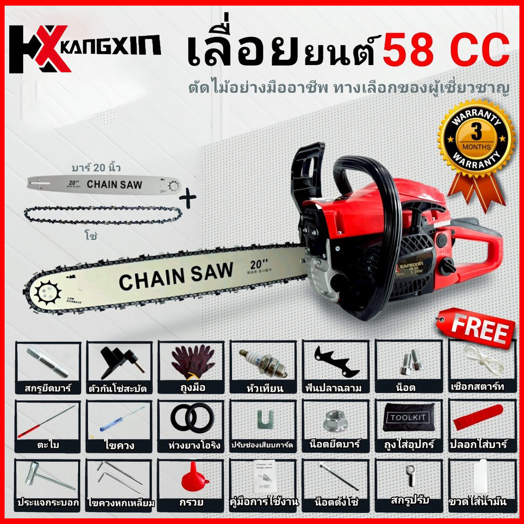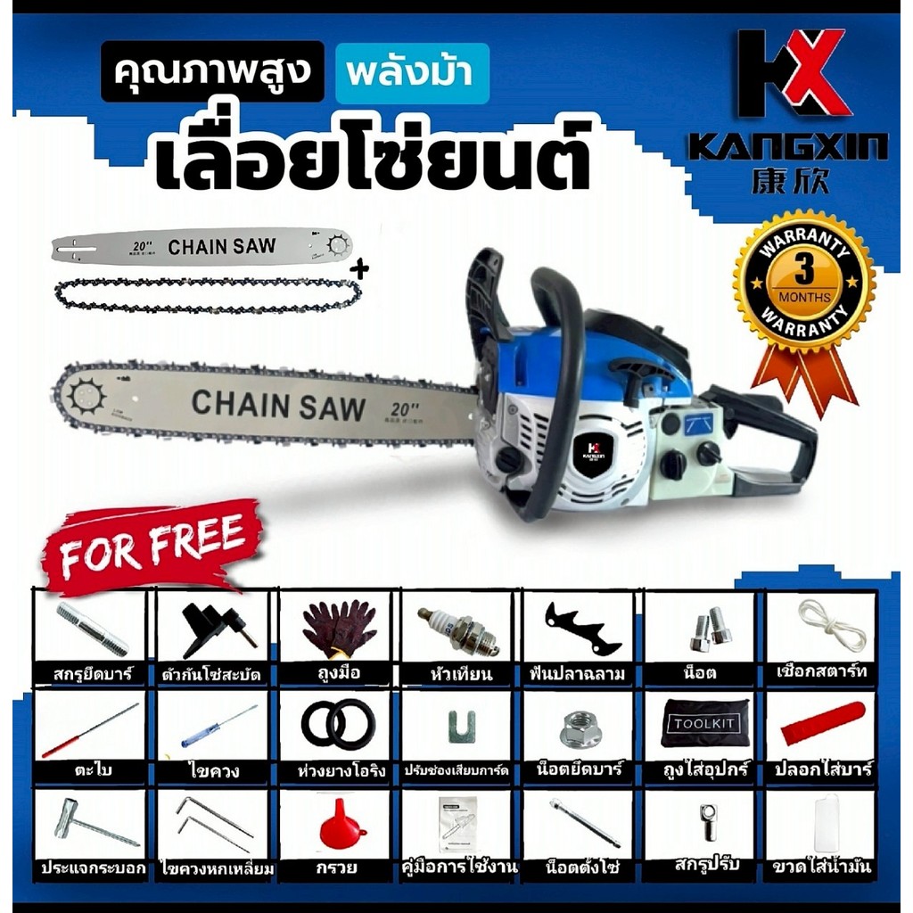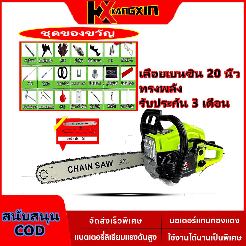 KANGXIN เลื่อยโซ่ยนต์ 4 จังหวะ กำลังสูง ตัดไม้ใหญ่ ต้นไม้กลางแจ้ง ใบเลื่อยคาร์ไบด์ [ให้ของขวัญ][ฟรีค่าส่ง]