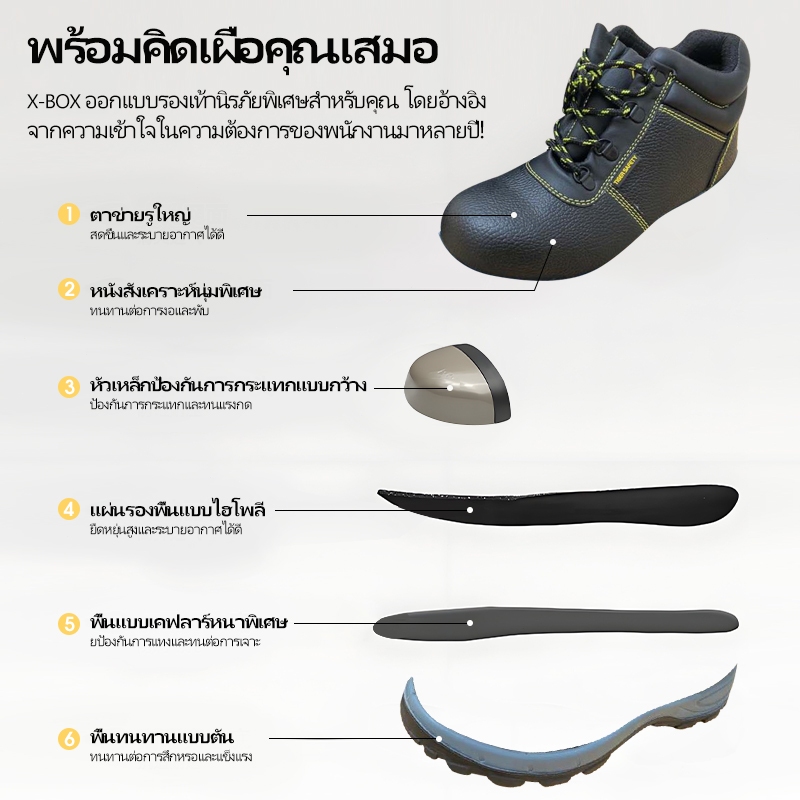 P01 X-Box รองเท้าเซฟตี้หุ้มข้อ หัวเหล็กพื้นเหล็ก หนังแท้ พื้น PU เบา สวย คุณภาพสูง ราคากันเอง safety shoes