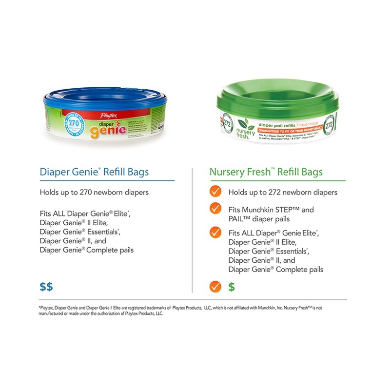 Munchkin : MNK24107* รีฟิวถุงสำหรับถังทิ้งผ้าอ้อมเนอสเซอรี่เฟรช Nursery Fresh Diaper Pail Refills, 1pk.